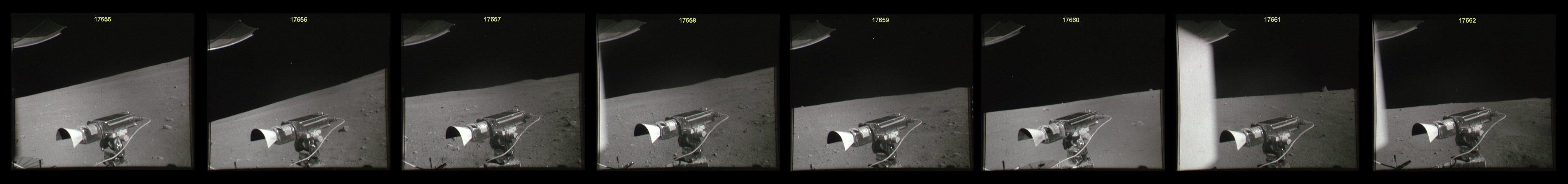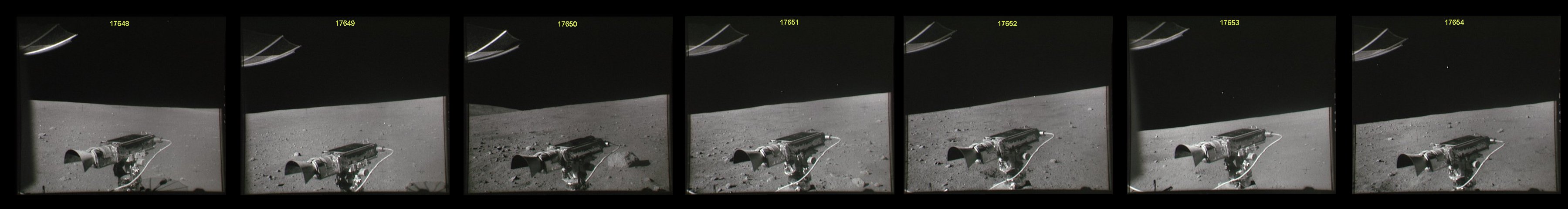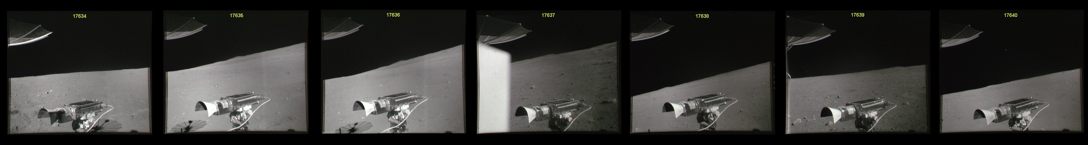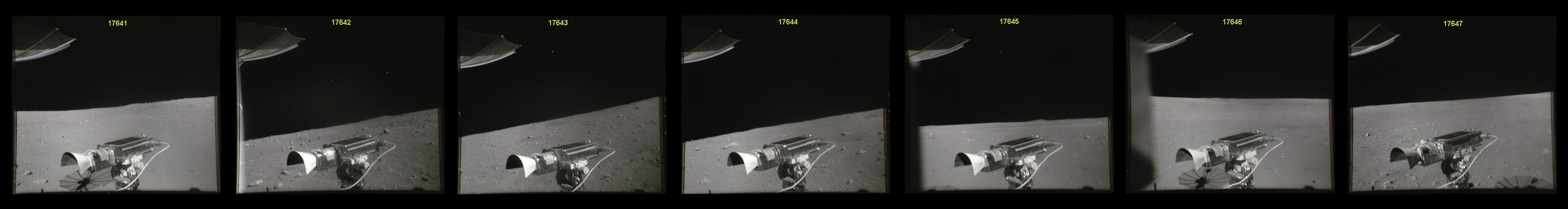 [Charlie's next seven traverse photos are AS16-108-17648 to 17654.]146:34:04 Duke: We're now at 005 at 3.0. And the contact I'm talking about is at 12 o'clock, probably a couple of hundred meters (ahead).