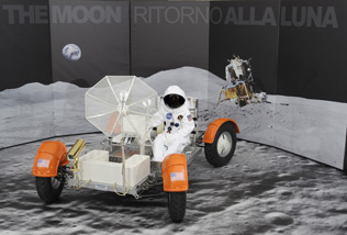 Replication of the LRV lunar vehicle that in 1971, ventured first to the moon, is exposed on days 4-5 November (2008) in the Palace of the Chancellery in Rome as part of the annual review scientific H2Roma. Powered by the division of the Marangoni Tire Machinery (Marangoni Meccanica SpA) in a three-year program of collaboration with the Museo Civico di Rovereto on several lines of research related to the field of robotics, sensors, automation also apply to issues of natural and new communication technologies, the Lunar Roving Vehicle replication by Marangoni has been developed for teaching purposes by engineers on the Marangoni technical and photographic material provided directly by NASA and requested a special documentary research and scientific information and to harmonize the definition of a complete project.