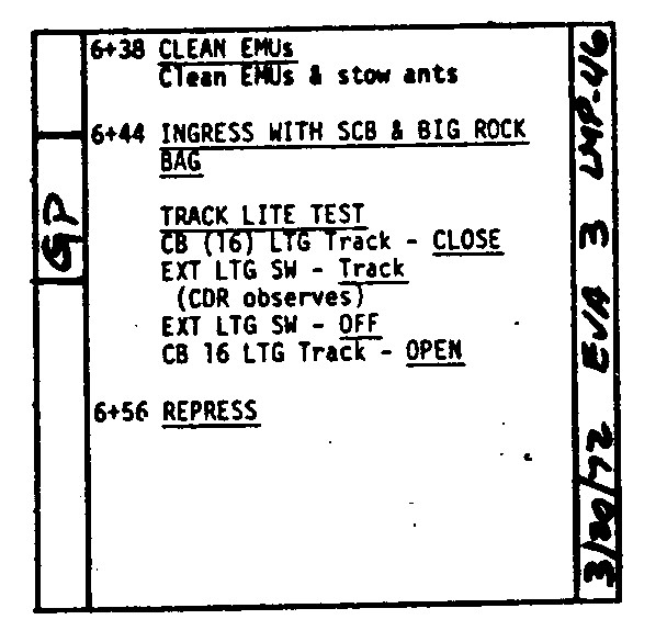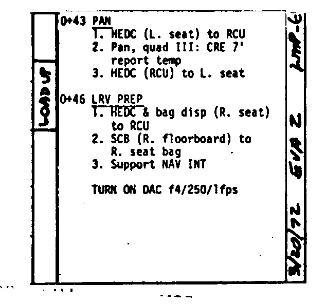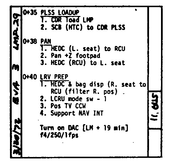 CDR-06/CDR/LMP-07: 0+40 PLSS Loadup, UV Camera, LRV Prep, Cartoon ( 68k )
