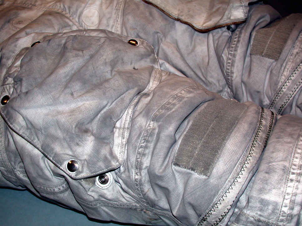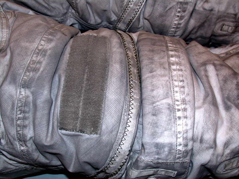 - Showing the area beneath the utility pocket. Dean Eppler notes that, in training photo KSC72PC-440 taken in July 1972, shows no Velcro strips below the utility pocket and two short, vertical strips on the right knee.