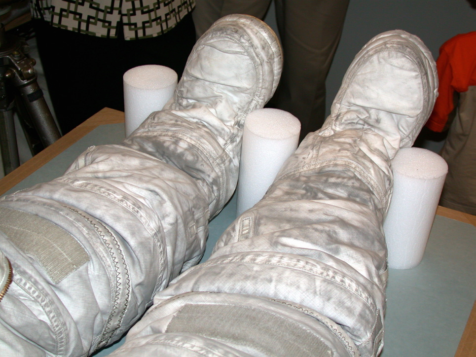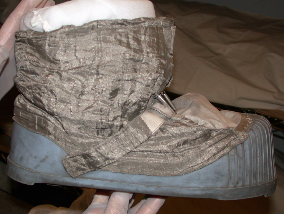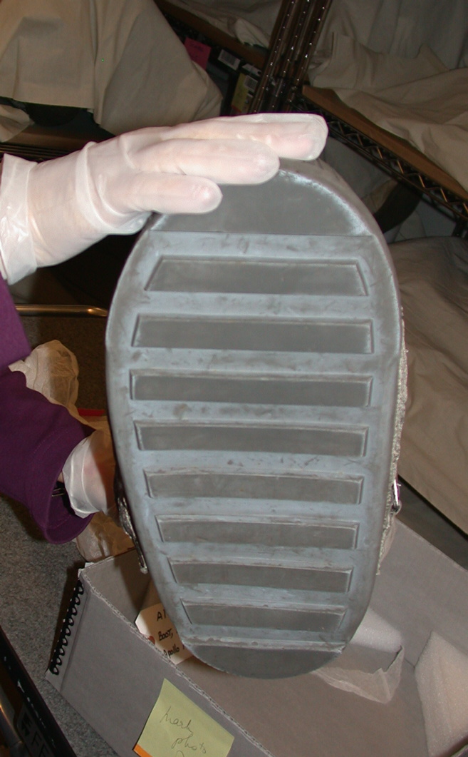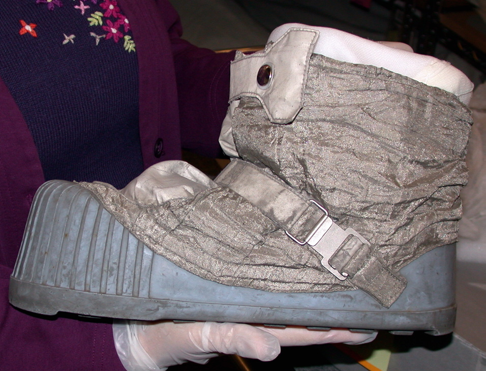 - View from the righthand side. The lunar boots slipped over the PGA boot and were held in place by straps.
