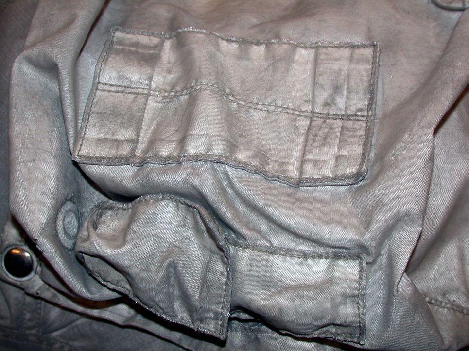 - View from the left shoulder across to the right arm. Note the shoulder pocket.