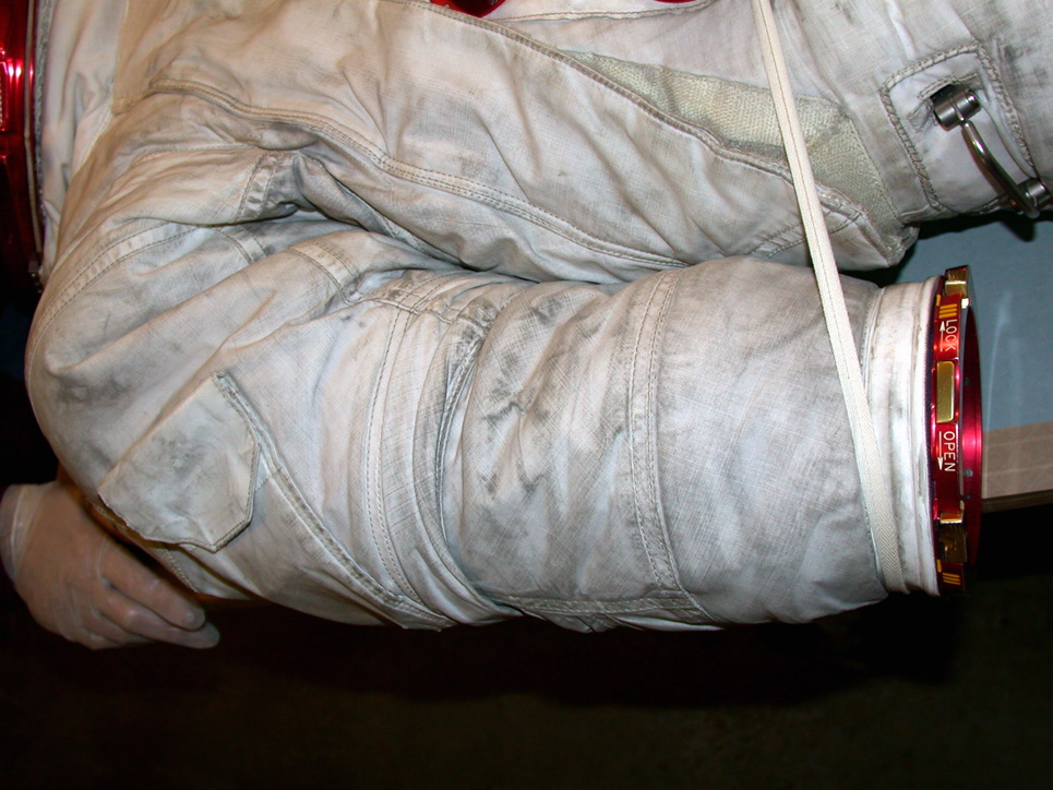 - View from the right of the sleeve, wristring, and rightside LM tether attachment.