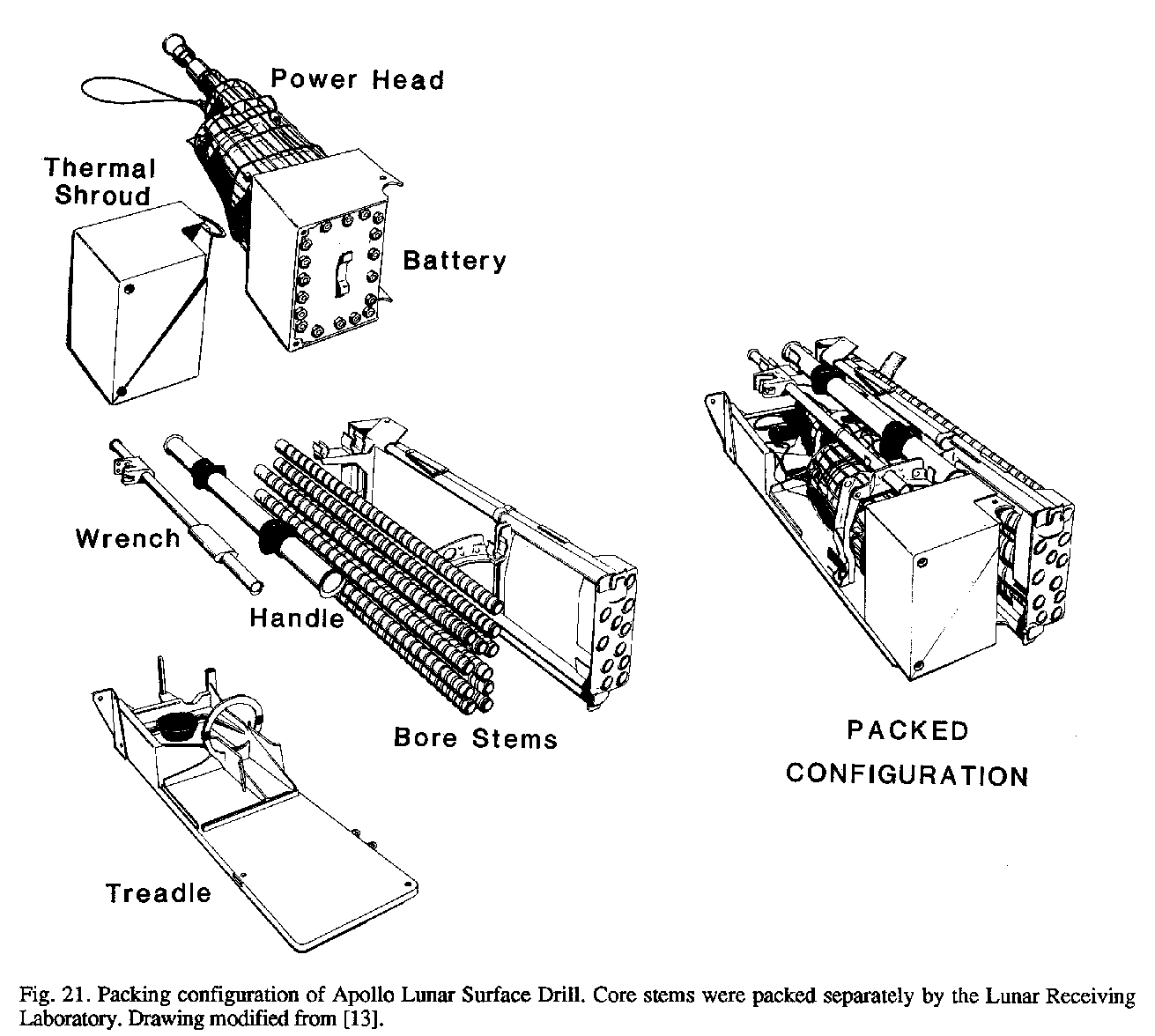 [Gene is thinking about the three holes he will have to drill at the ALSEP site. Gene only raises the hammer about 15-20 cm on each stroke. Sixteen strokes drives the staff about that many inches - about 40 cm.]118:21:48 Schmitt: Whang! I think we hit something solid with that one.