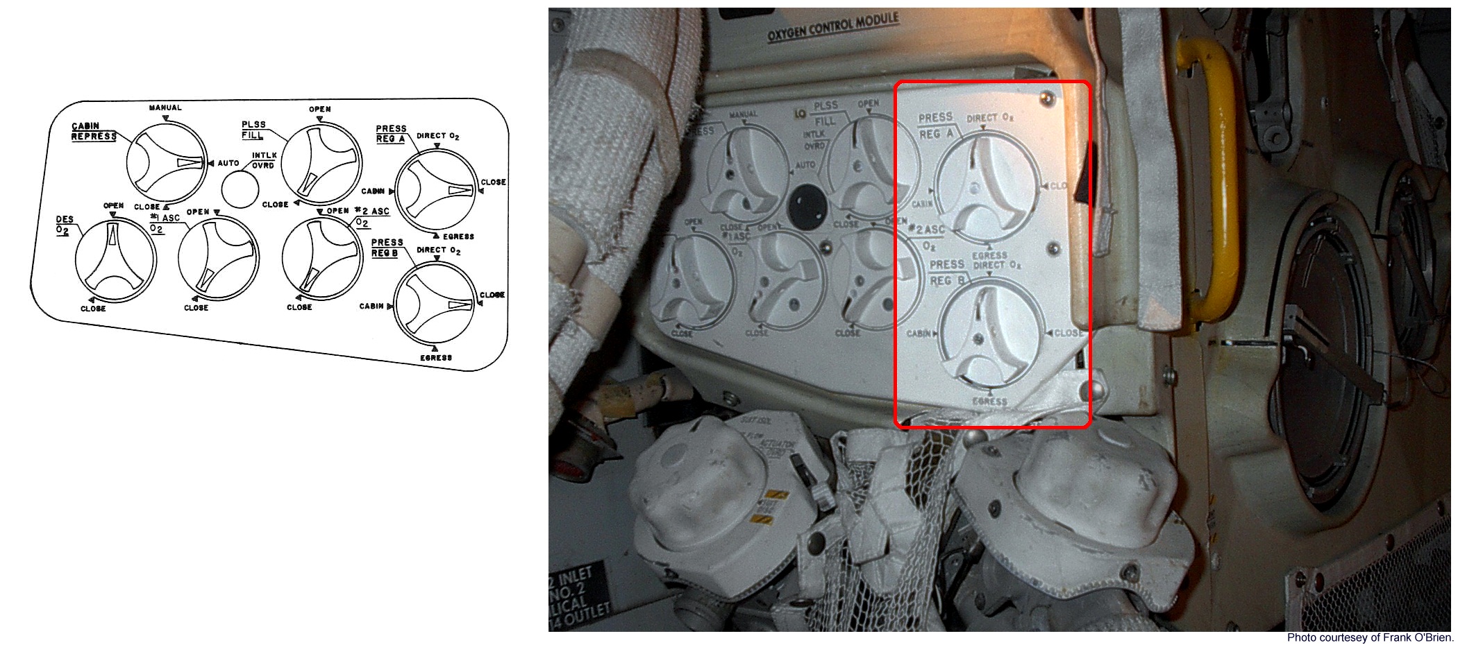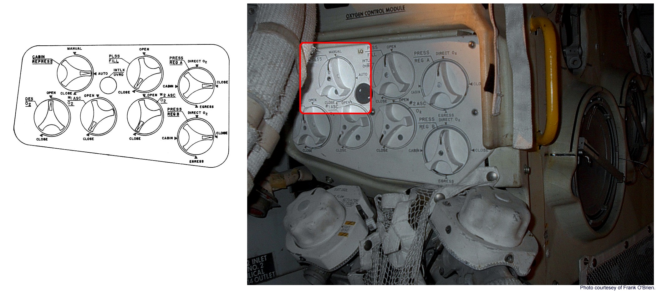 [The pressure regulators are now set to keep the cabin pressure at 4.8 psi.]124:13:21 Cernan: Okay, and I want your PLSS O2 Off, when I give you a call. That's when we get greater than 2.5 (psi cabin pressure). (Pause)