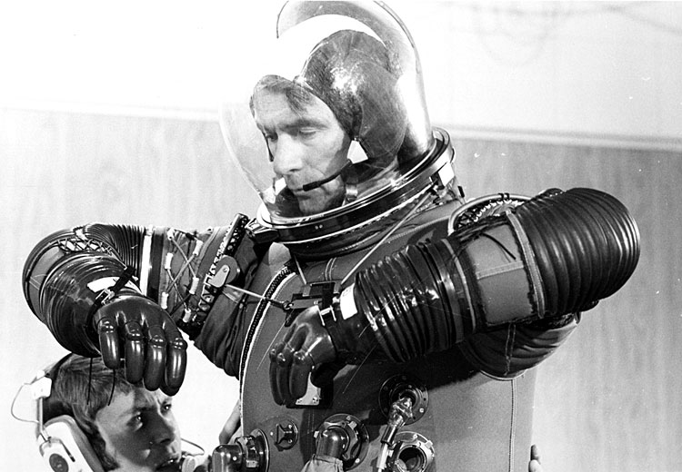[Editor's note: The value of the worn gloves - both from an historical and an engineering point of view is inestimable. They made the right choice.]174:56:23 Slayton: How long are your arms, Jack.