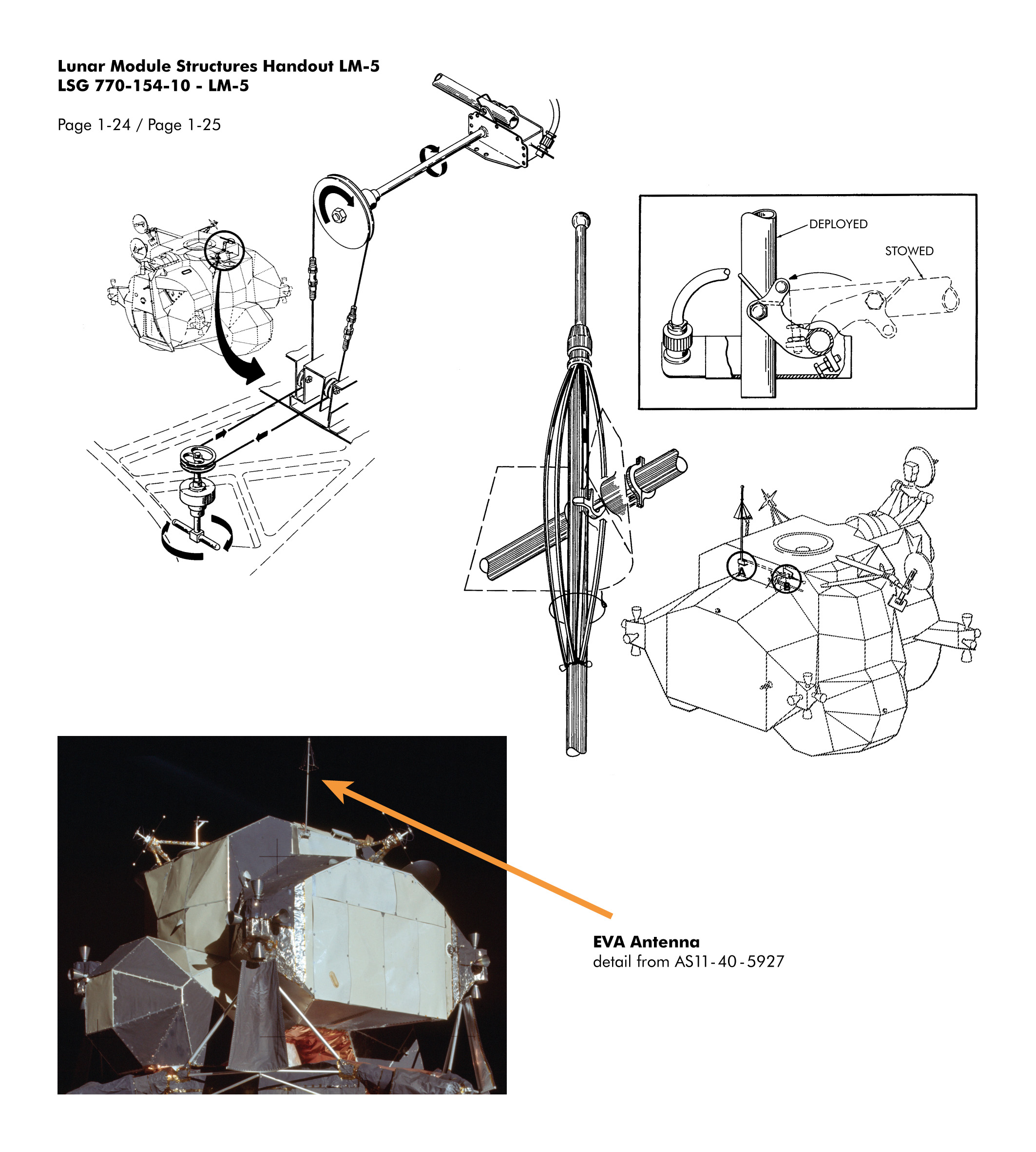 [This step is near the top of the left-hand column of Surface 7-8.]175:17:03 Schmitt: And I'll be off comm here just for a few minutes - (correcting himself) (off) biomed - but I'll be back with you when I turn in.[Schmitt - "This was an antenna on the LM for receiving EVA transmissions. The ground could monitor signal strengths and just pick whichever antenna was getting the best strength - either the Rover or the LM."]