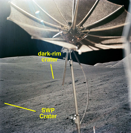 [Schmitt - "The more I think about what I said, the more I think that there were two pit-bottom craters side by side. Maybe there's a picture that shows it."]166:39:27 Cernan: Right here, Jack, you're going to be able to peek right over the top of SWP. (Pause)