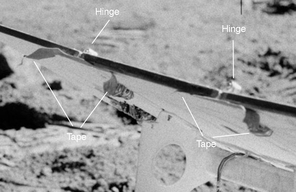 123:09:08 Cernan: Keep from falling over? You want to take those solar panels off?