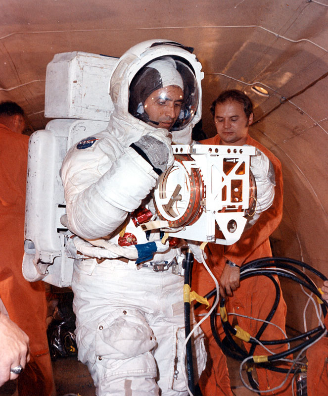 [Gene holds Jack's hand so that he can do a deep knee bend without quite kneeling.]123:11:10 Schmitt: Everything on this SEP is coming off harder than it did when we deployed it at the Cape. See that? It just lifted. It may not be harder, but it lifted.
