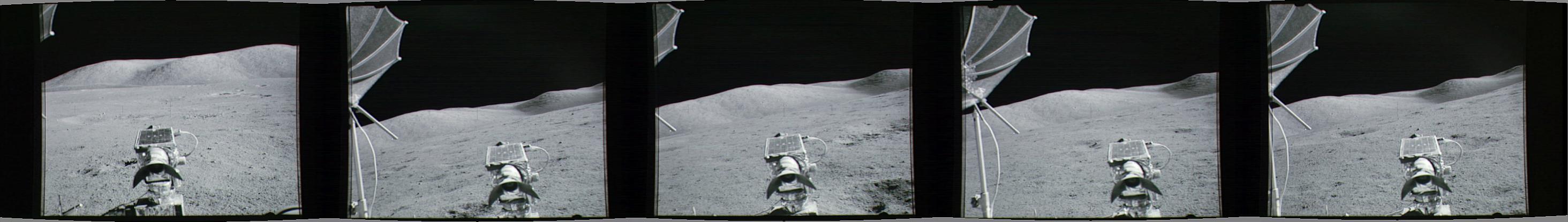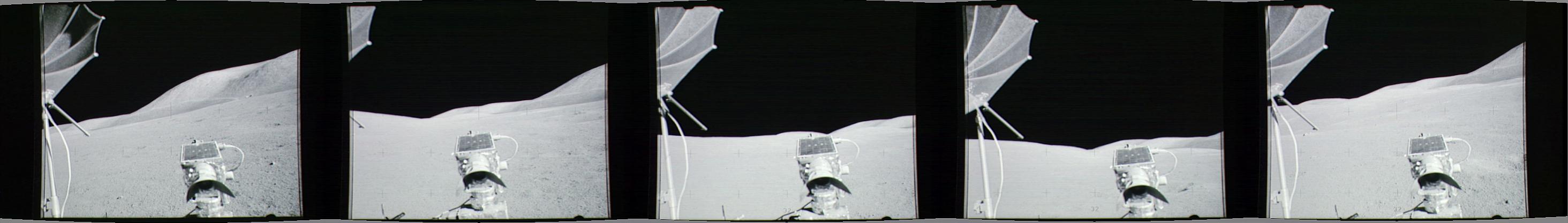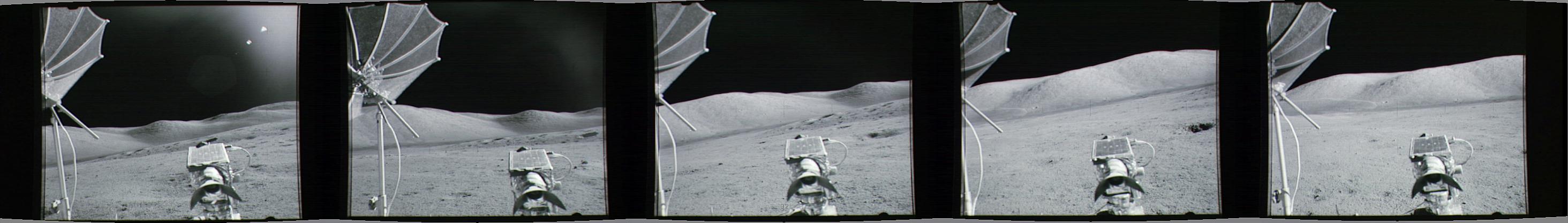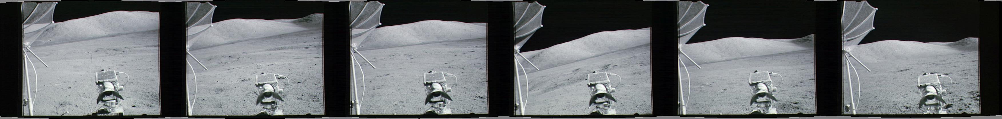 [Jack will take a series of pictures as Gene turns the Rover in a circle. These pictures are AS17-138- 21077 to 21092. Because of the glare of the Sun, the up-Sun frames - 21079 and 21080 - don't show much detail.]143:50:20 Cernan: Wait a minute. Wait a minute. Okay. Let's take one from right here. I want the whole thing (that is, the whole valley). (Pause) You ready to start?