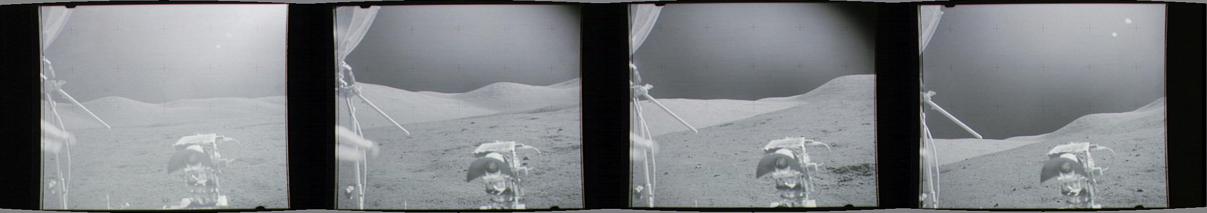 [Schmitt - "That was the field geologist talking. When you're a field geologist and you say something's there and you put it on your map, you expect that people will trust you without a photograph. And Gene was thinking 'Nobody'll believe us unless there's a picture of it.'"]146:19:26 Cernan: Okay. Look at...Look at up...up the (Wessex) Cleft over there. You can see definite change in albedo now between the North Massif and the Sculptured Hills. Lookit, right up the valley. Well, you can't see it...Let me...[Cernan - "A picture adds a lot to your description, particularly if you're in a hurry like we were at Shorty."]