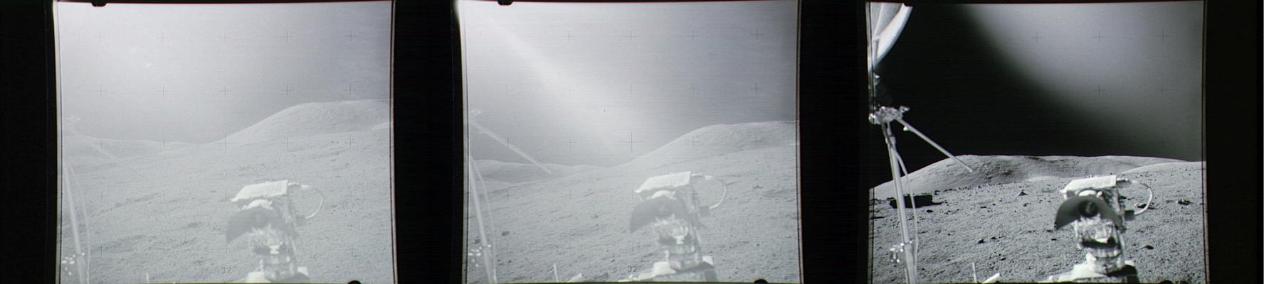 [Cernan - "Driving up-Sun was mean. It was like what happens in flight when the Sun's directly overhead and you look down. You just lose your visibility because of the glare."]145:58:00 Schmitt: I got it.