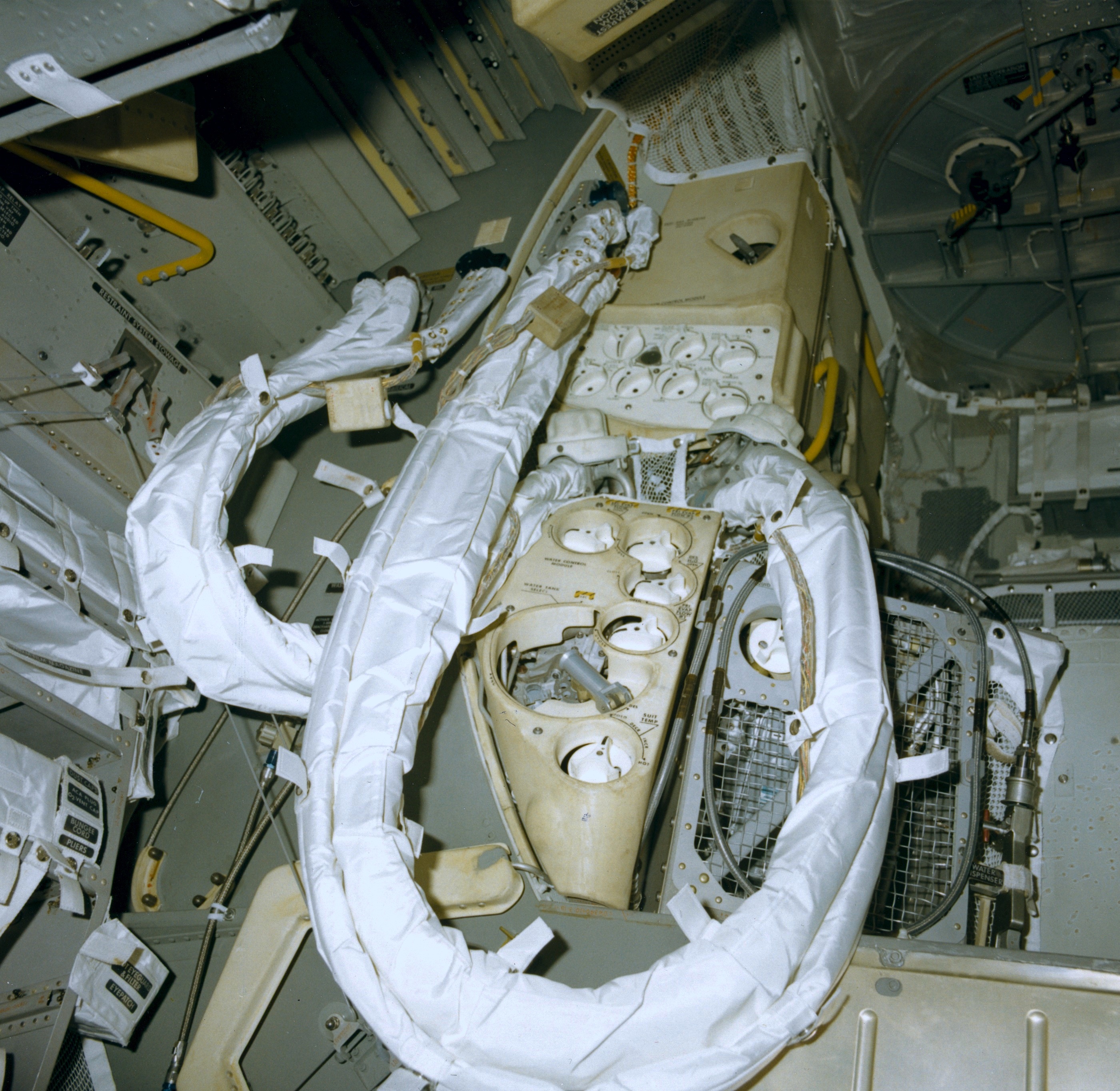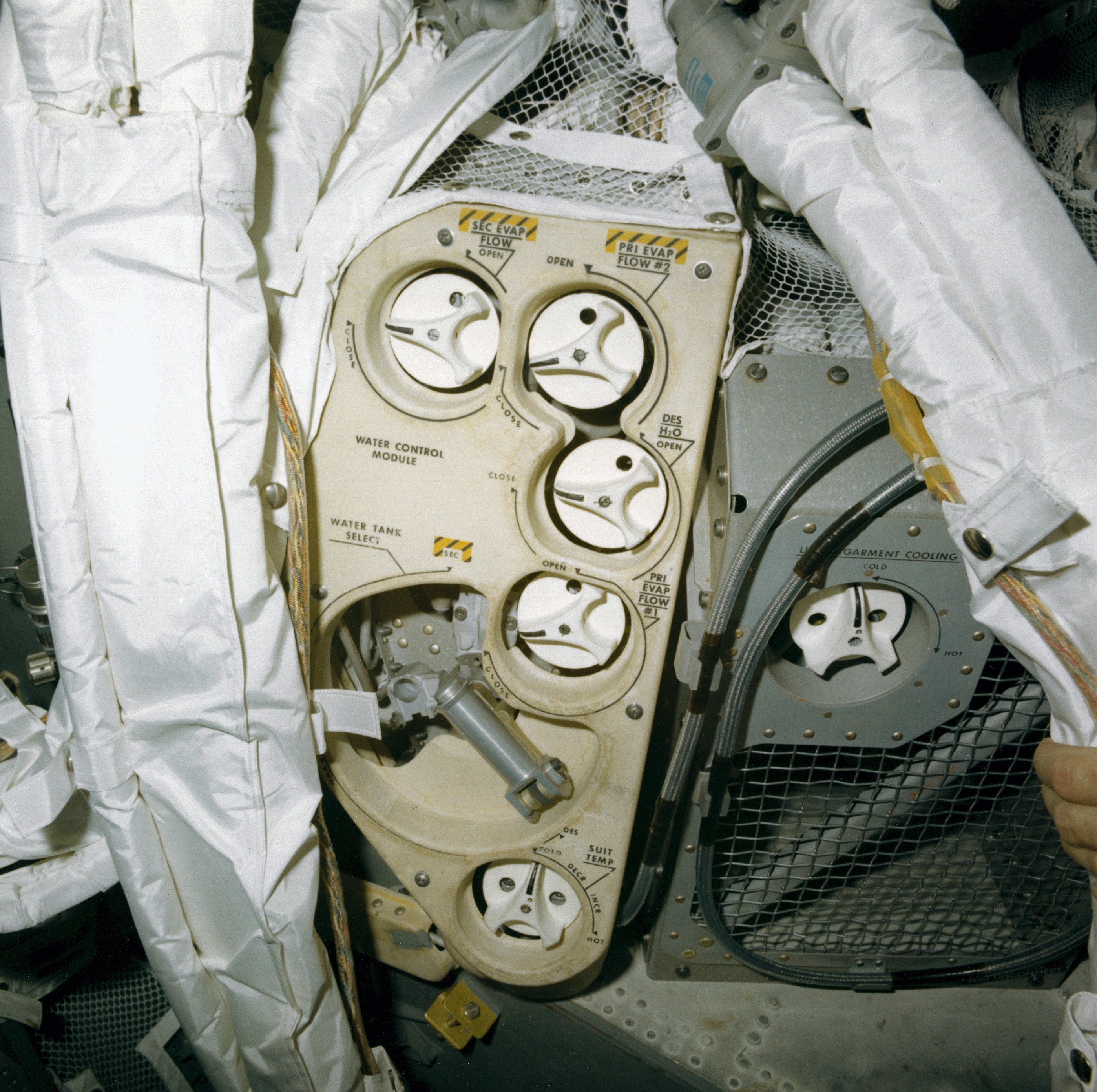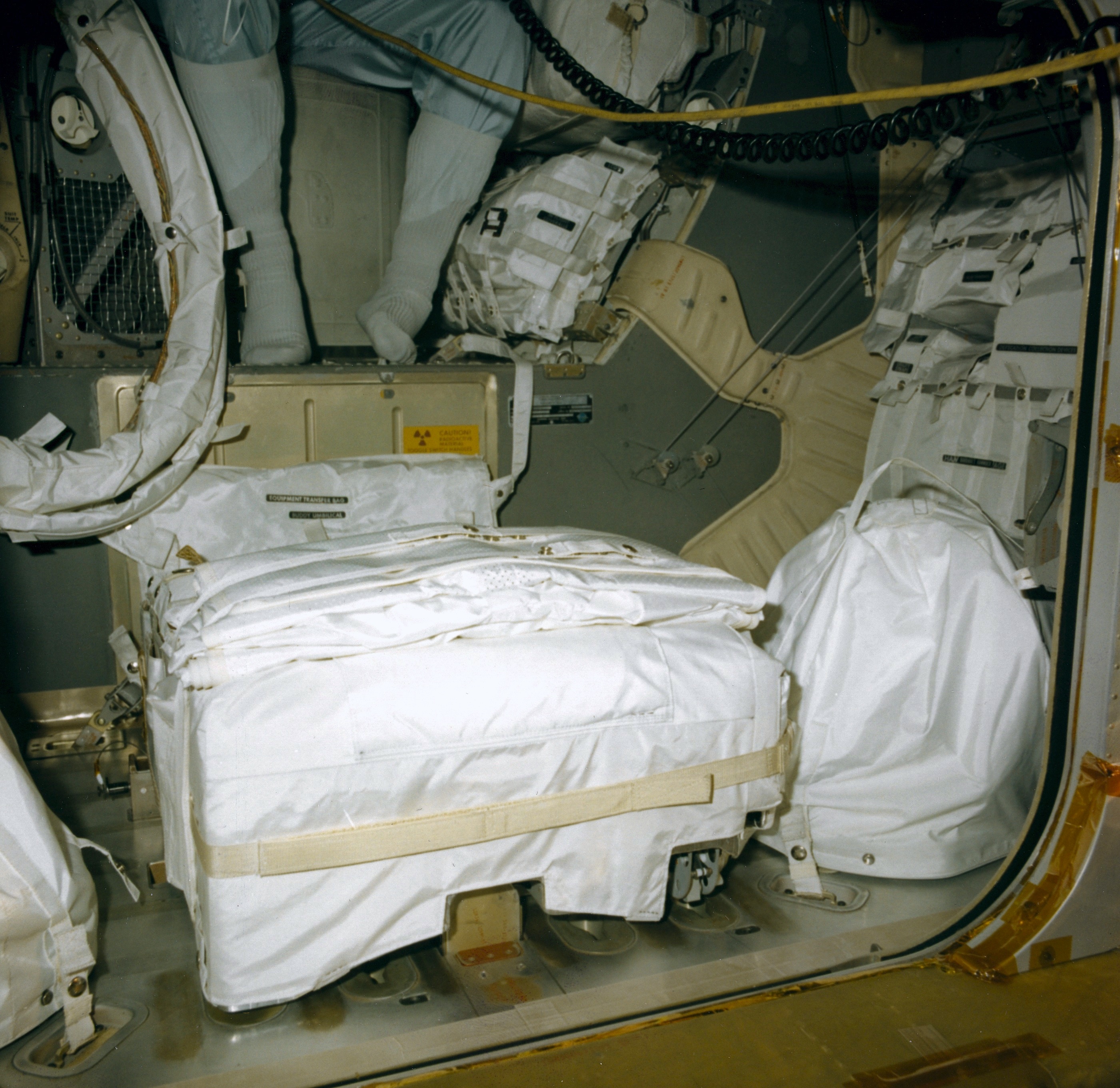 (2) View through the open hatch of LMP PLSS, both