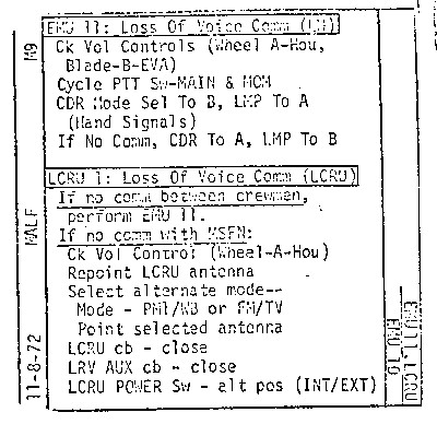 EMU/LCRU Malfunctions: EMU 11, LCRU 1LMP-47
