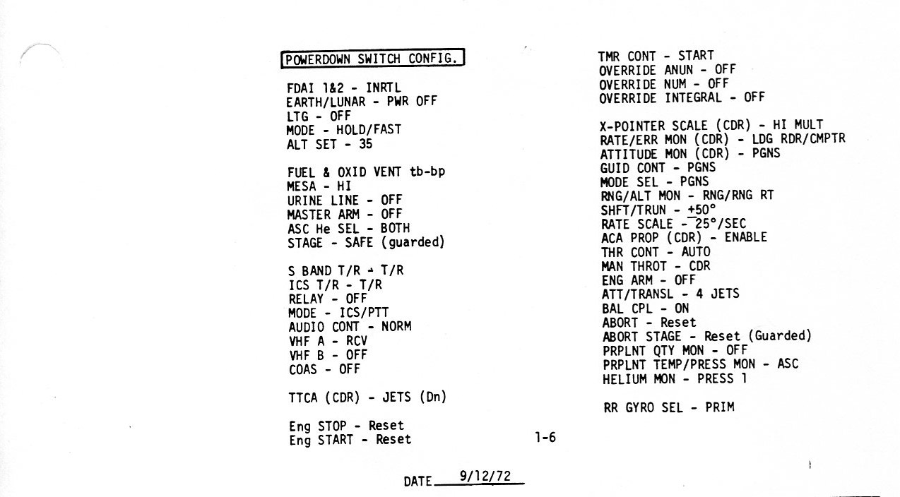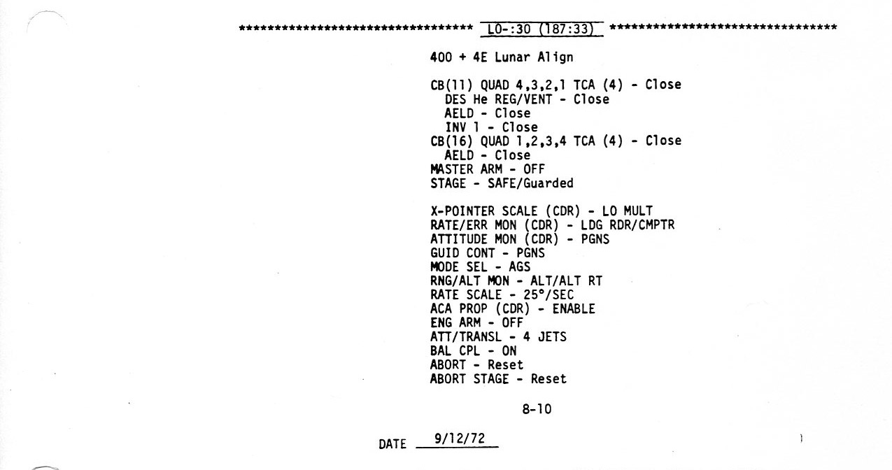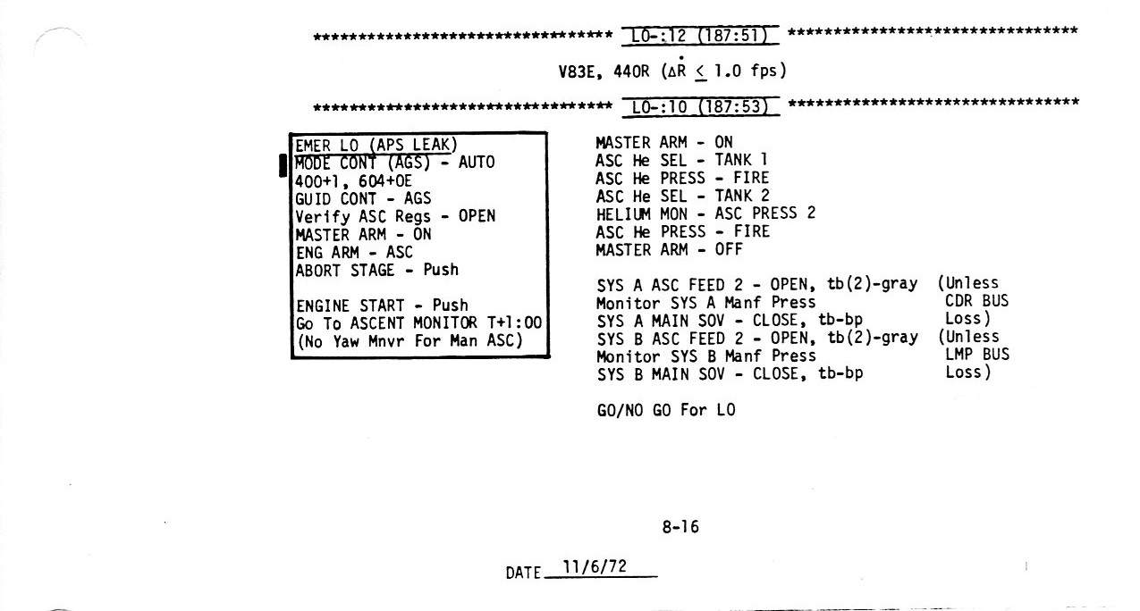 Surface 8-16, LO - 0:10, Ascent Propulsion Switch Settings (0.2Mb)