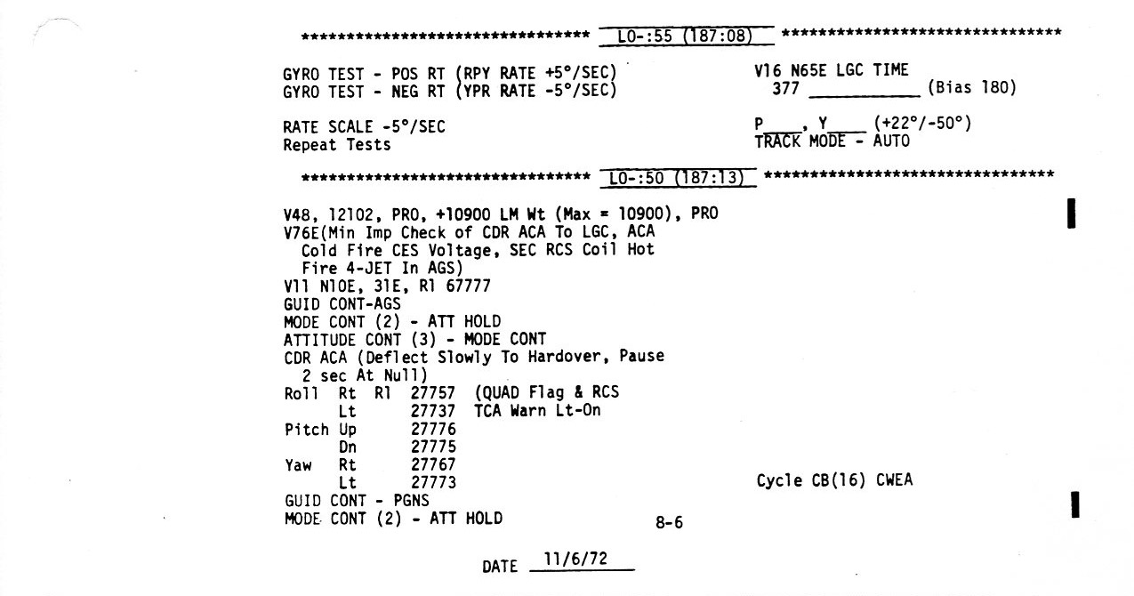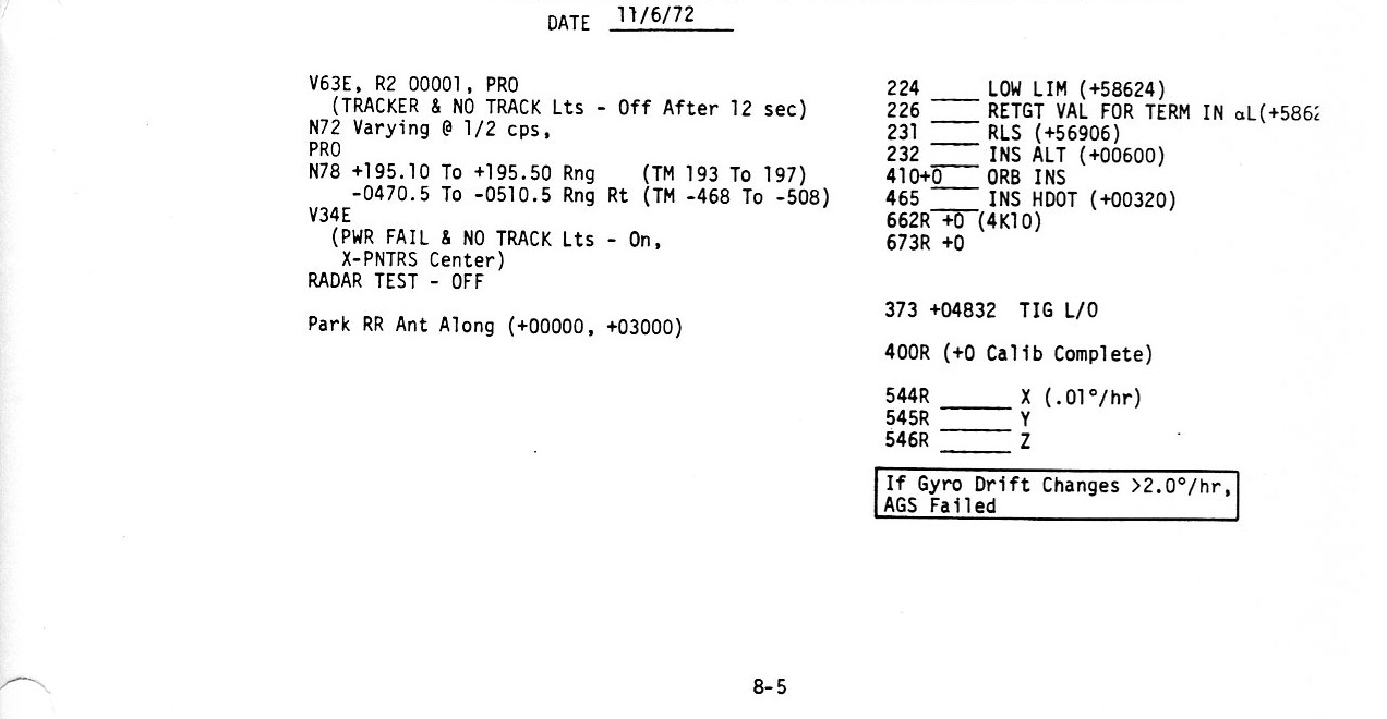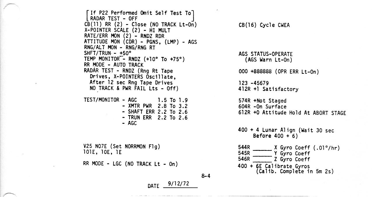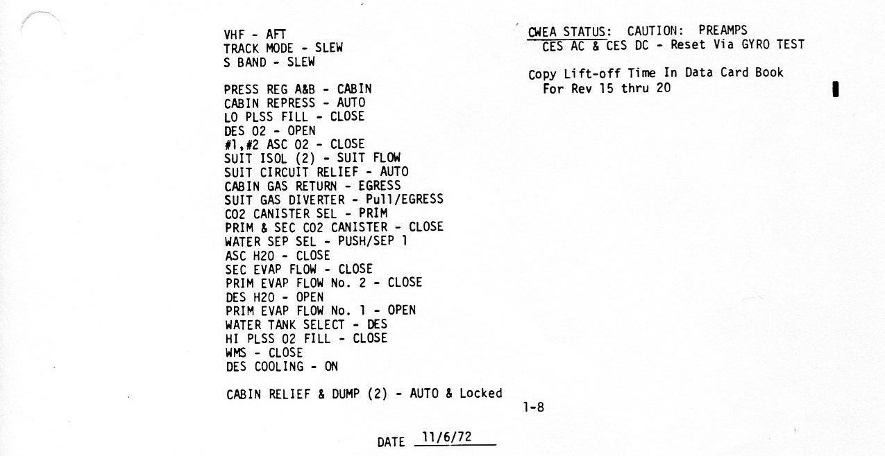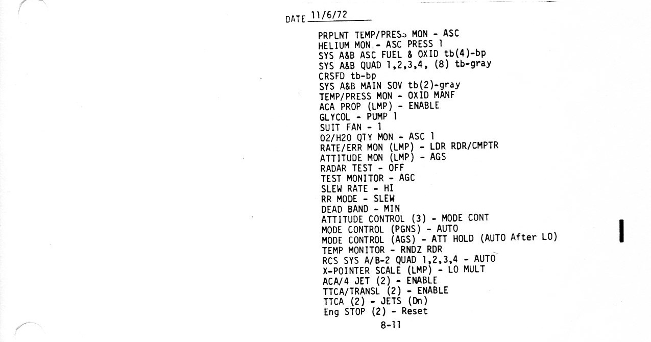 Surface 8-17, LO - 0:05/Check APS Burn Card/Check APS, RCS, EPS, ECS (0.2Mb)