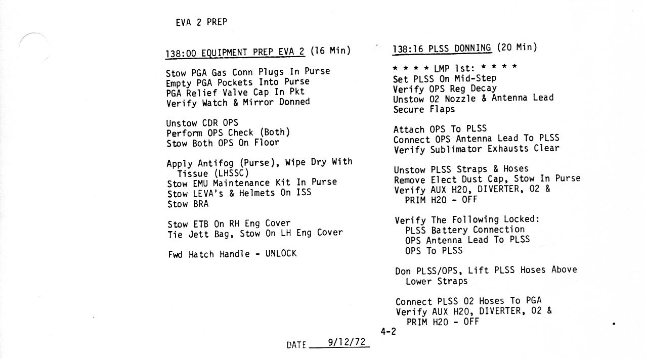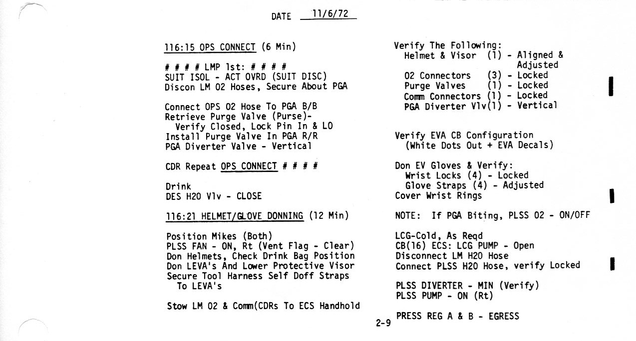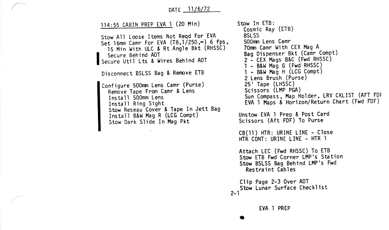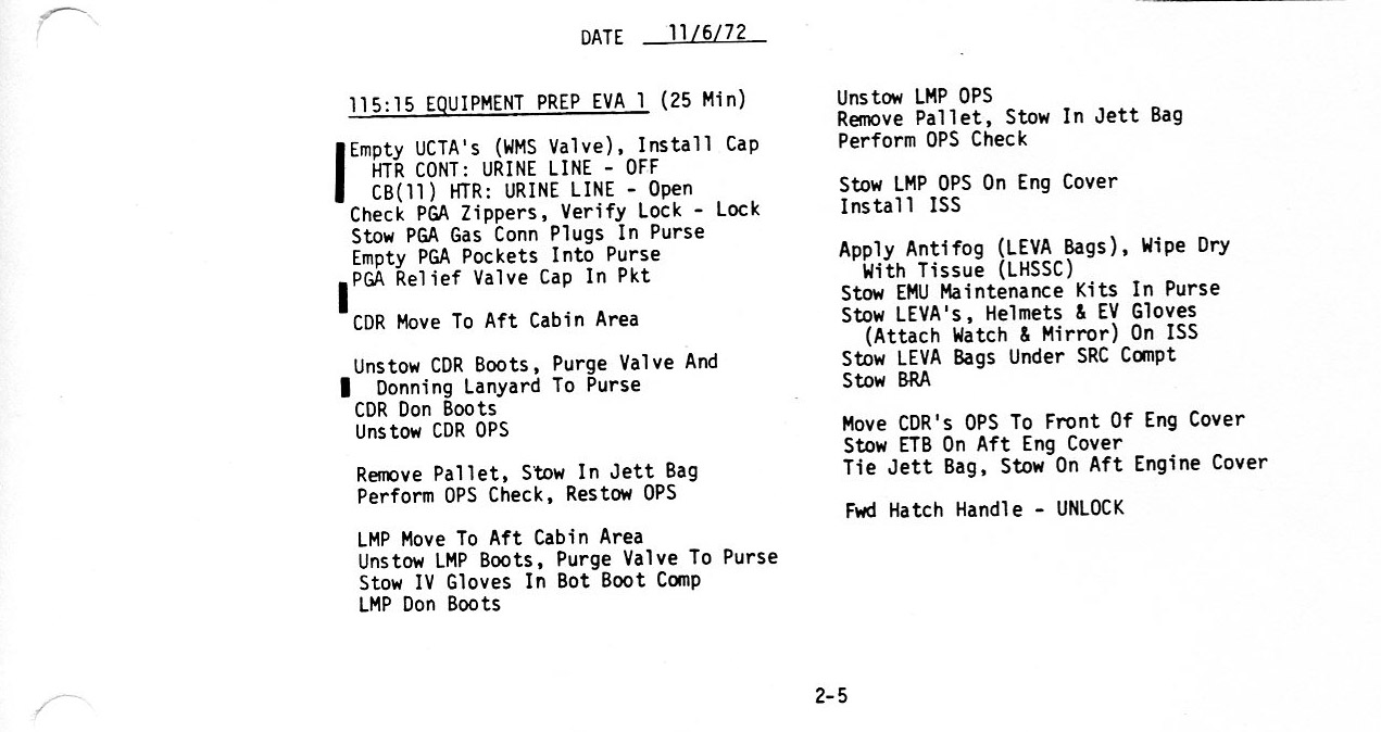 Surface 2-5, 115:15, Equipment Prep for EVA-1 (0.2Mb)