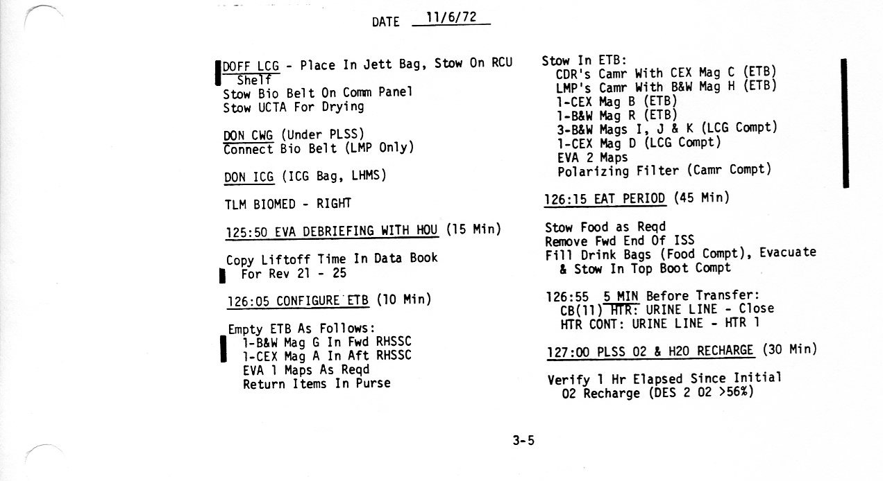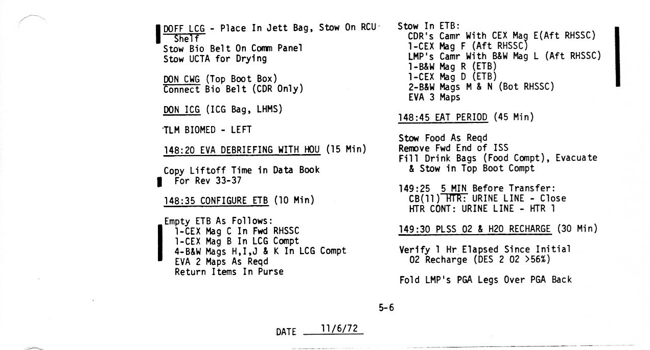 Surface 5-6, Doff LCG, Configure ETB, Eat, PLSS O2 and H20 Recharge (0.2Mb)