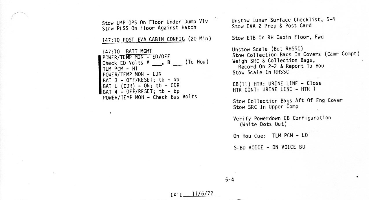 Surface 5-1, Post EVA 2, Systems Configuration (0.1Mb)