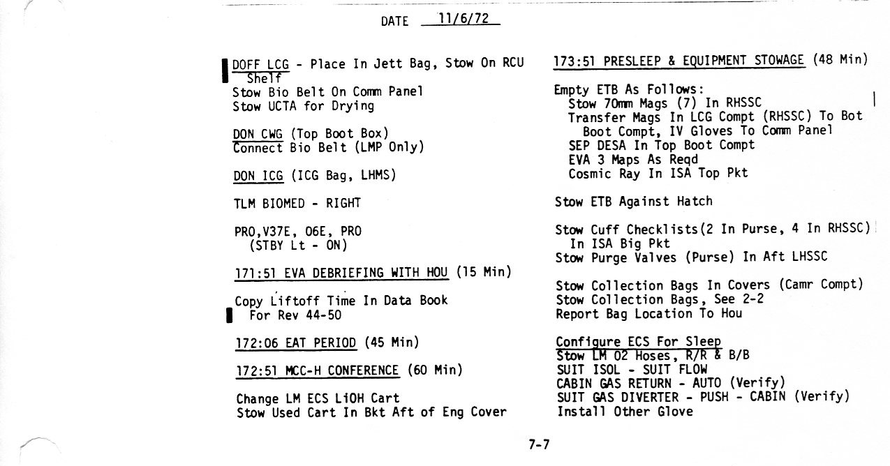 Surface 7-7, Doff LCG/EVA Debrief/Eat/MCC-H Conference/PreSleep and Stowage (0.2Mb)