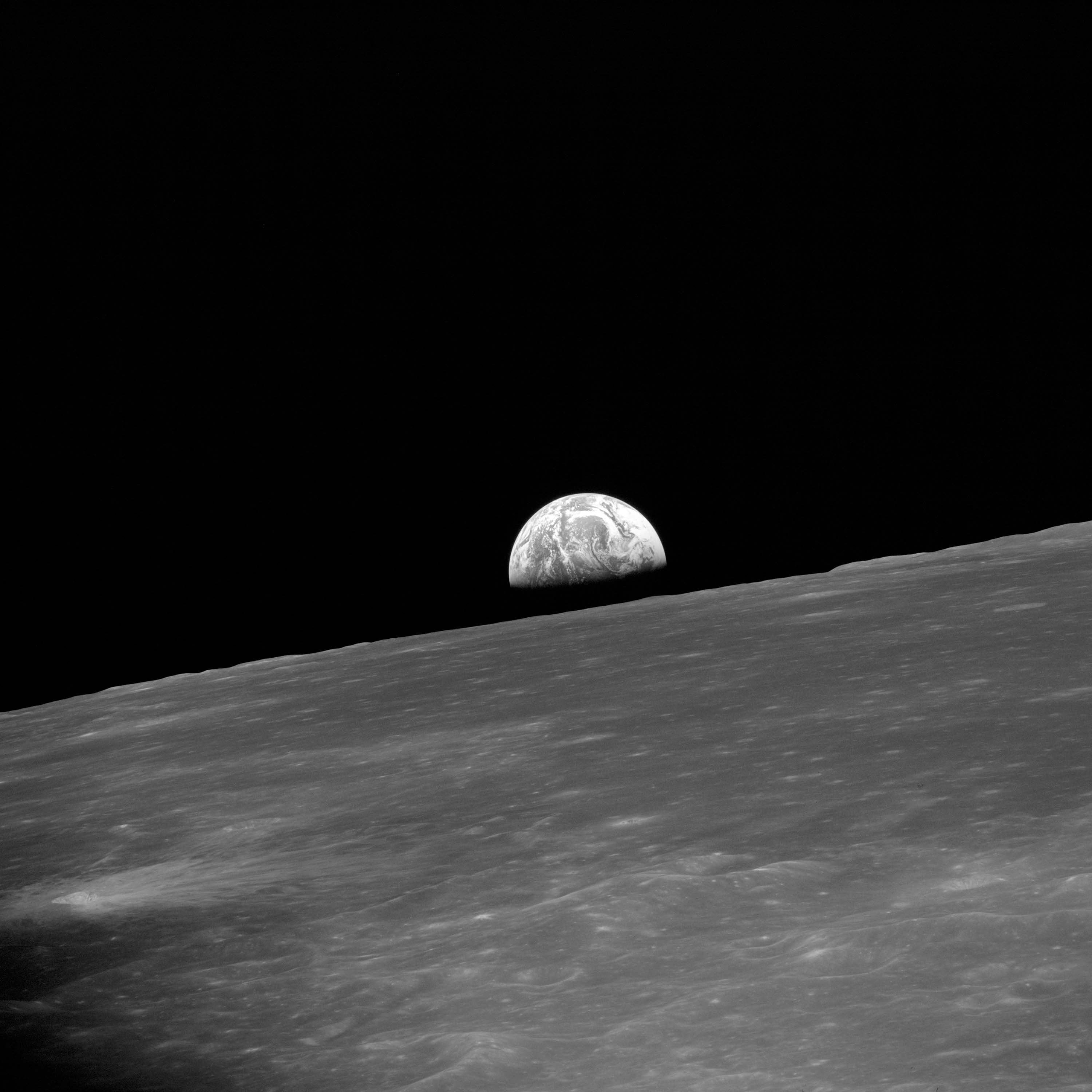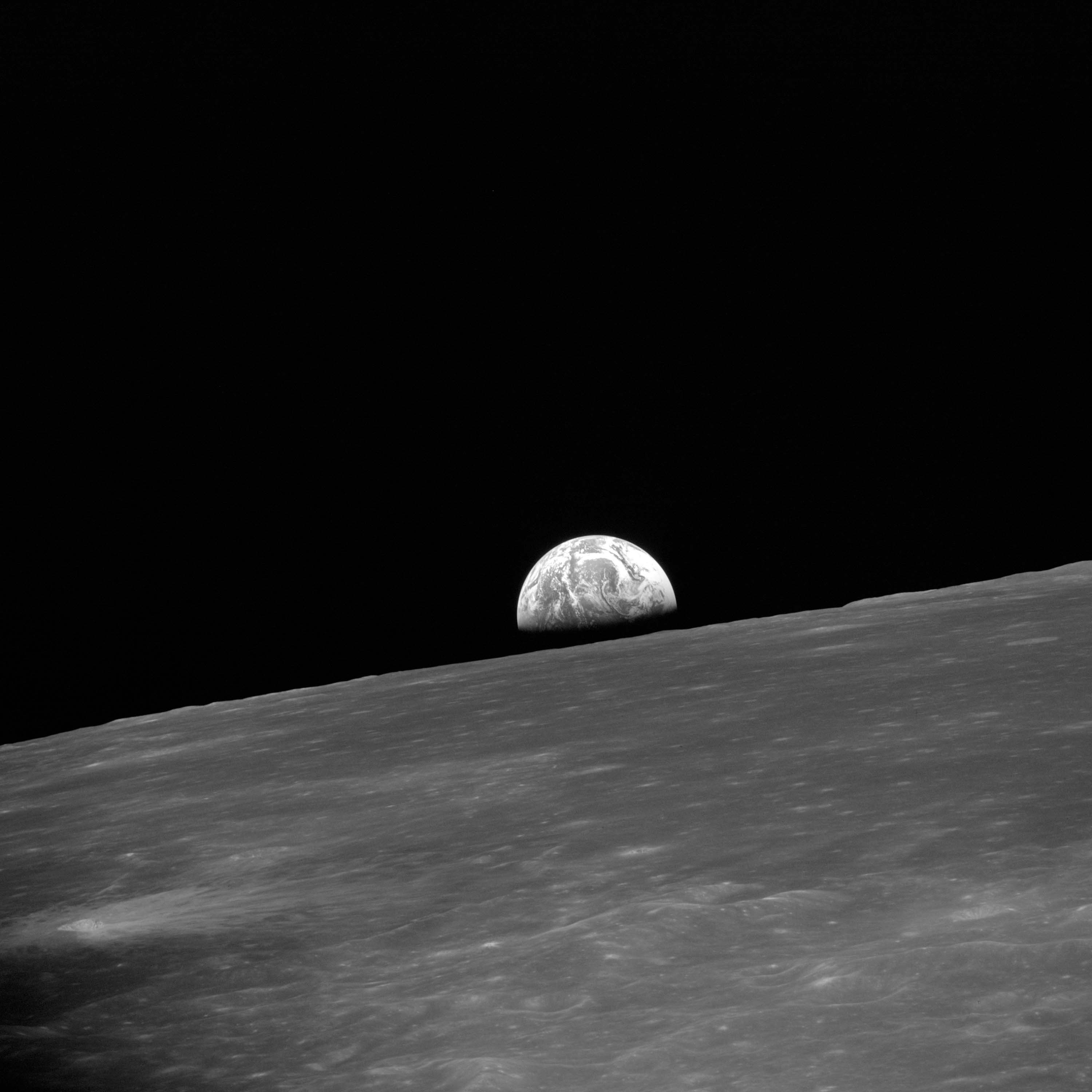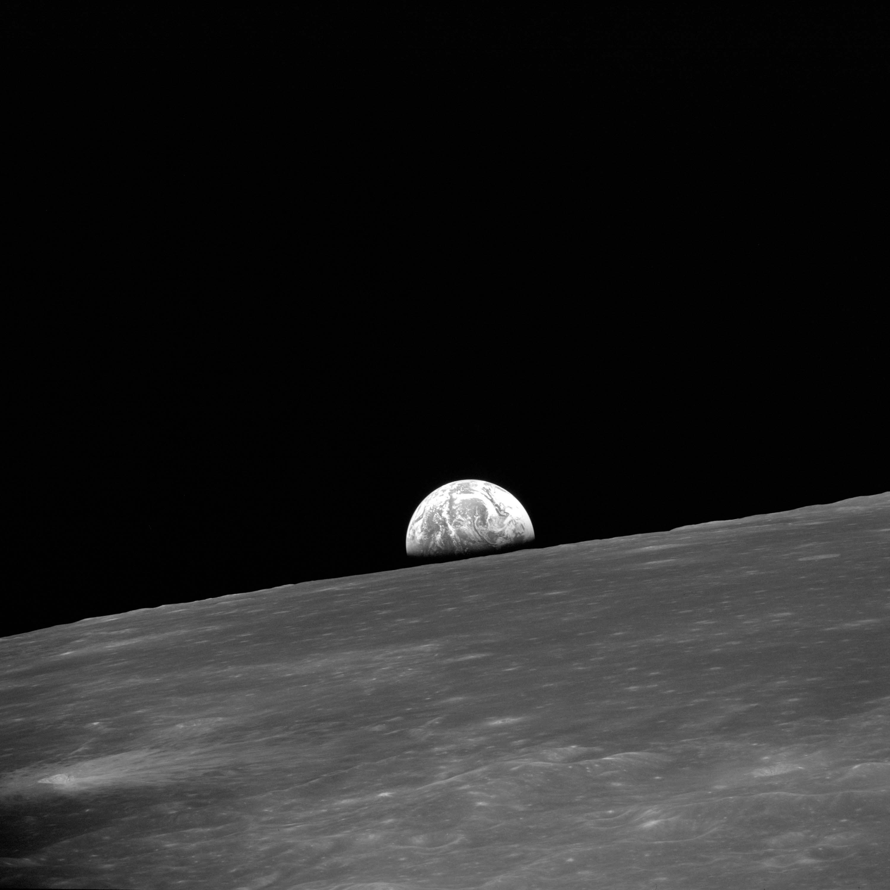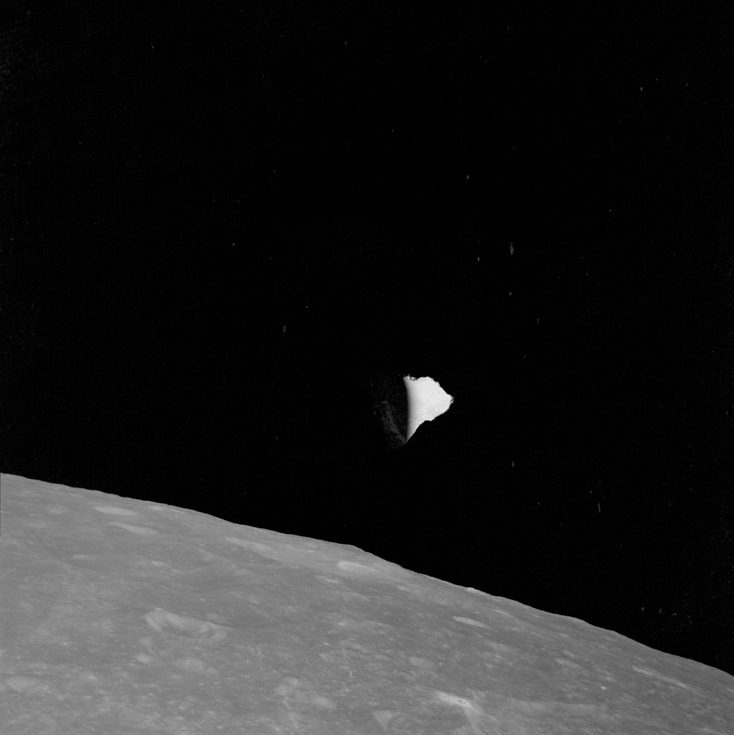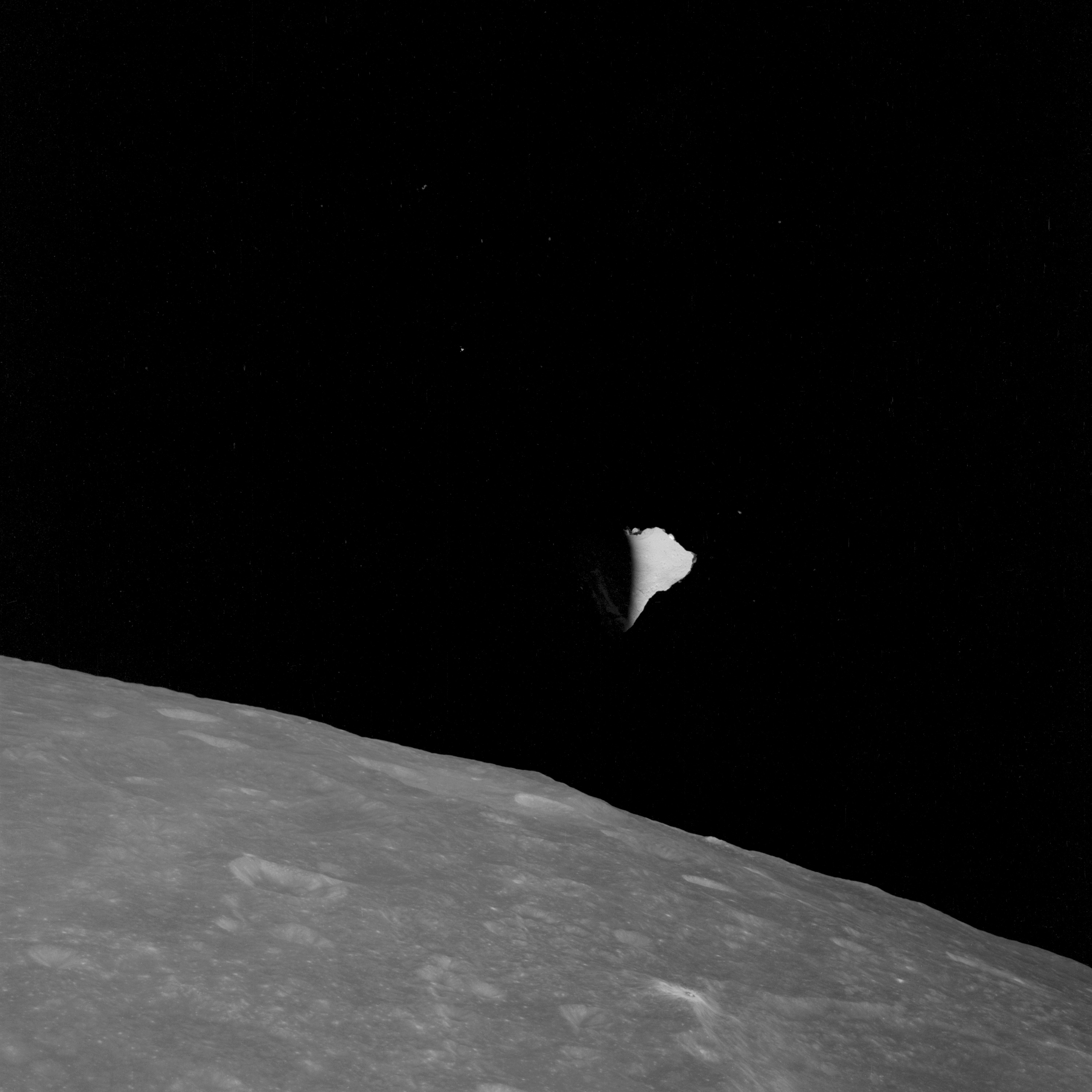 Earthrise from lunar orbit. Possibly the first after Lunar Orbit Insertion (LOI). Scan courtesy NASA Johnson.AS10-28-3988 (0.8 Mb )