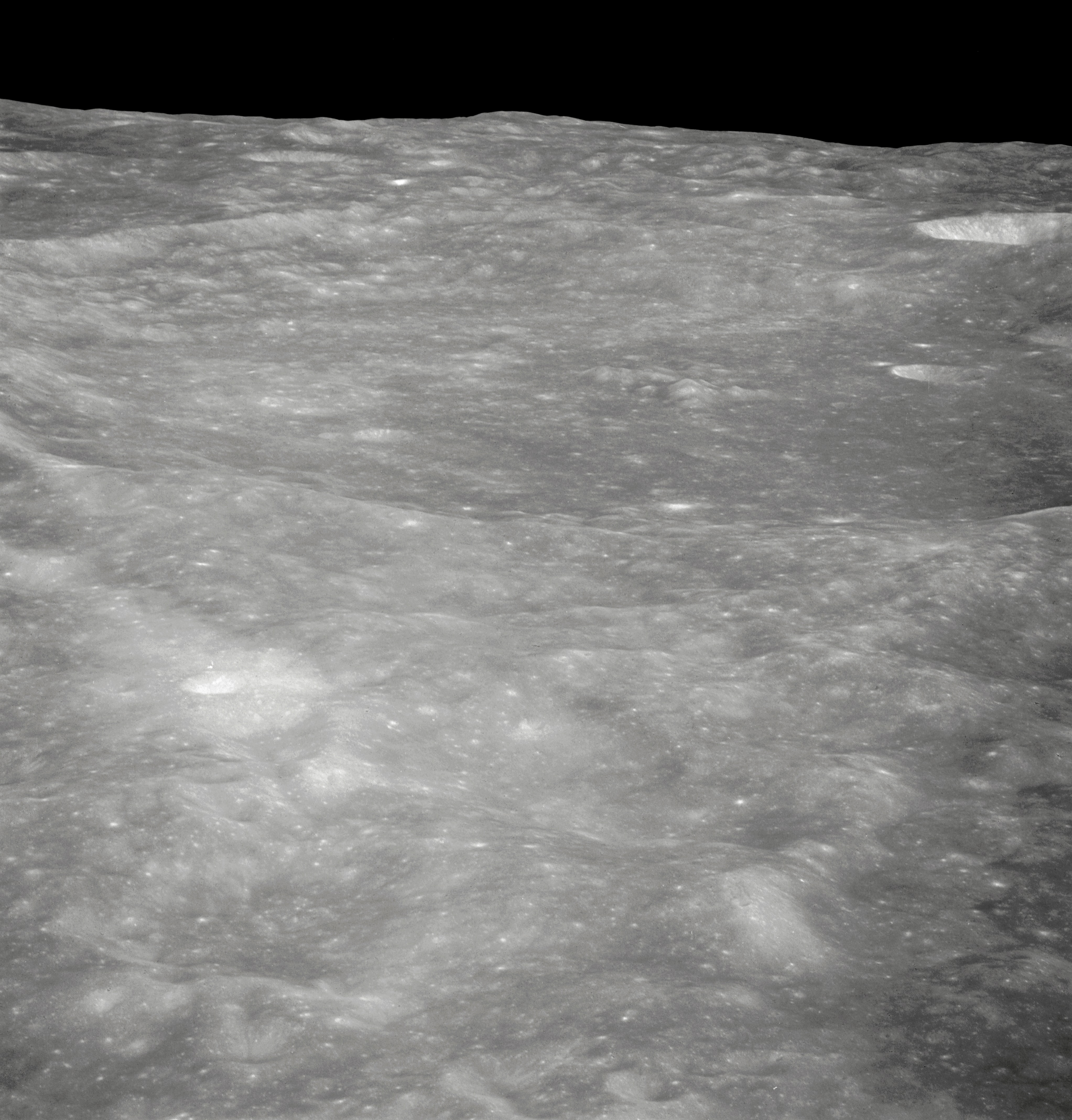 Mount Marilyn, named for Jim Lovell's wife, is the large feature below and to the right of center. Scan courtesy NASA Johnson.AS10-31-4521 (221k )