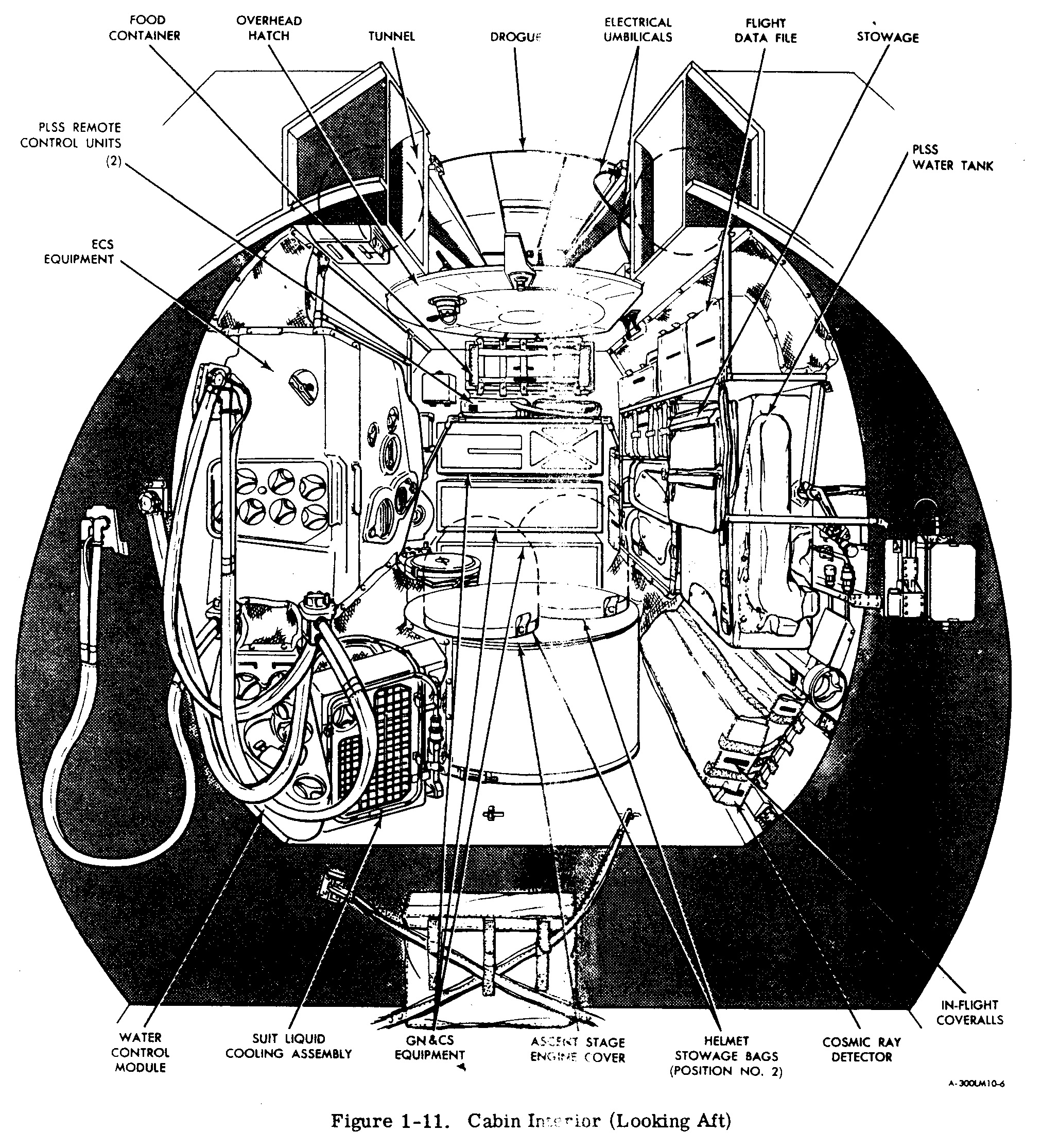 | HSBs, containing LEVAs, EV gloves, etc secured on LM cabin floor (locations 1-Fa/1-F10) | Earth launch |