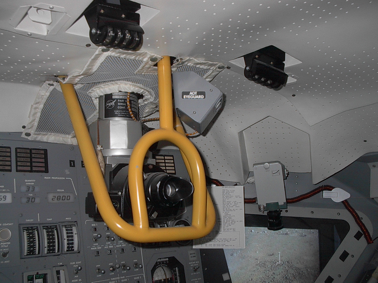 - Center display panels with the Alignment Optical Telescope (AOT) in the foreground at the top left ( 740k )