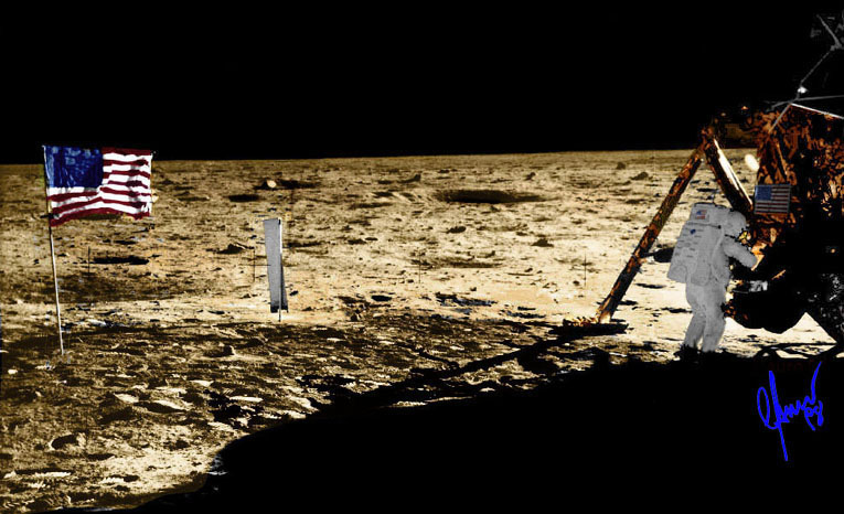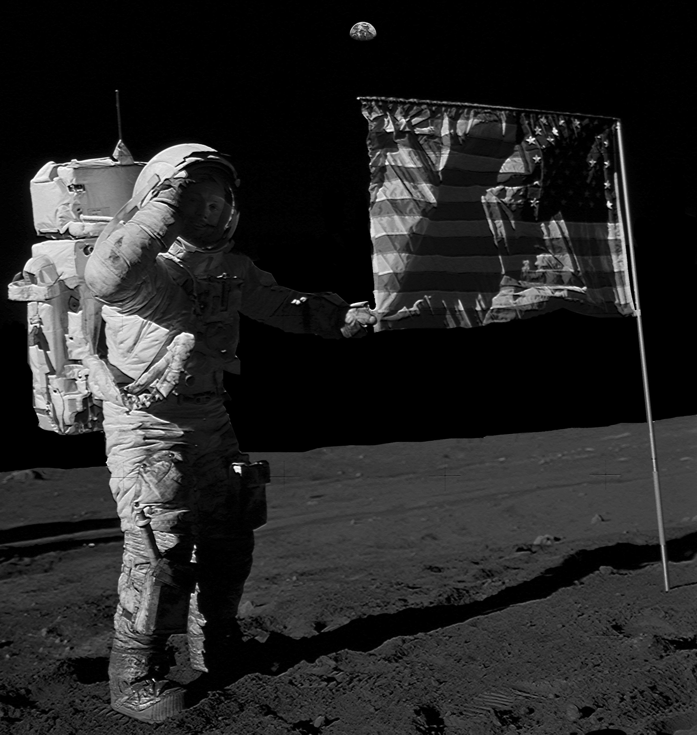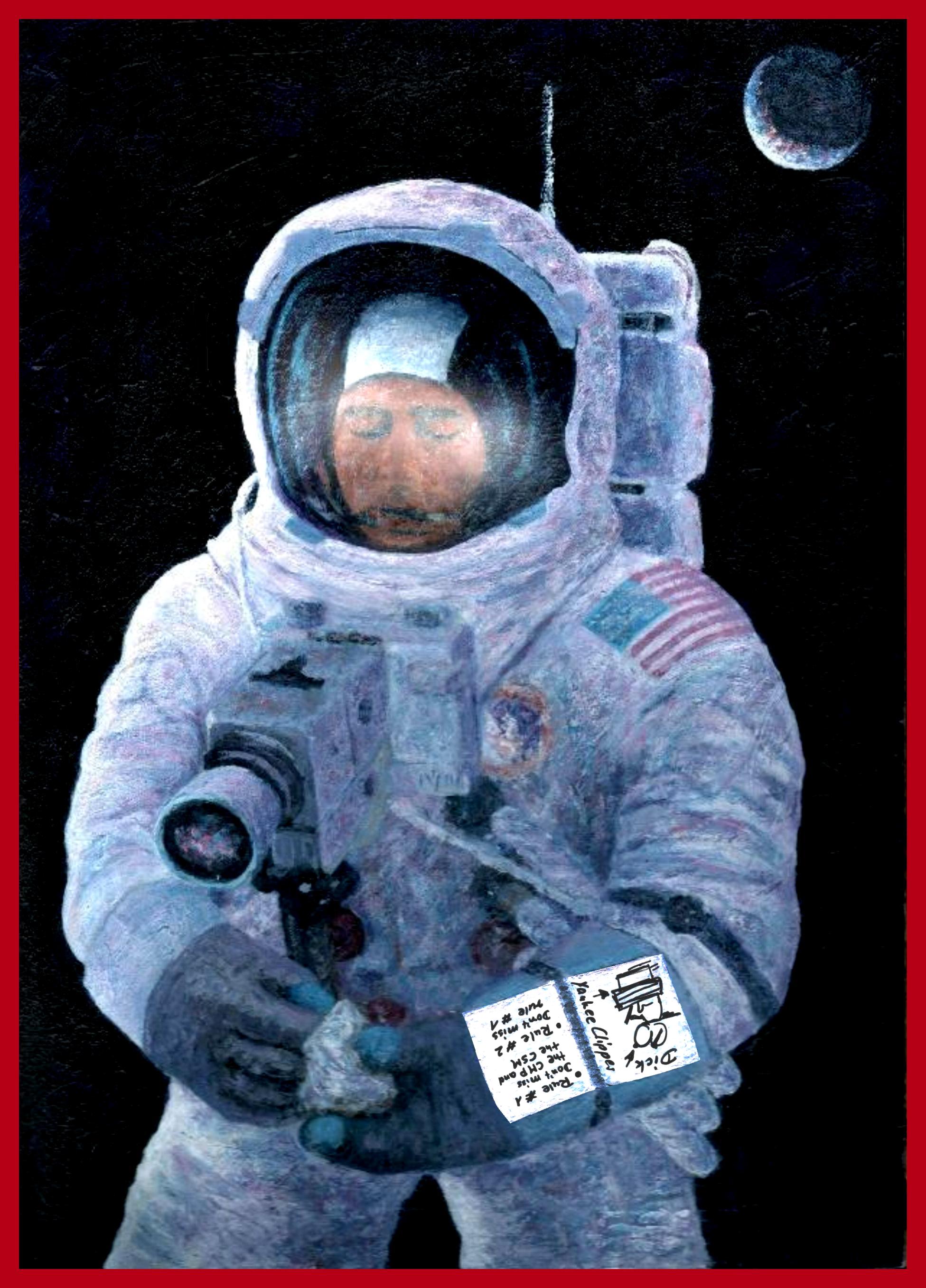 The following creations show the fun side of being an Apollo enthusiast. Many of the offerings use Apollo images and scenes as a basis, but with unexpected additions. Some show members of the ALSJ/AFJ team having Apollo-like adventures here on Planet Earth. And still other offerings make use of Apollo material for various artistic purposes. Enjoy!