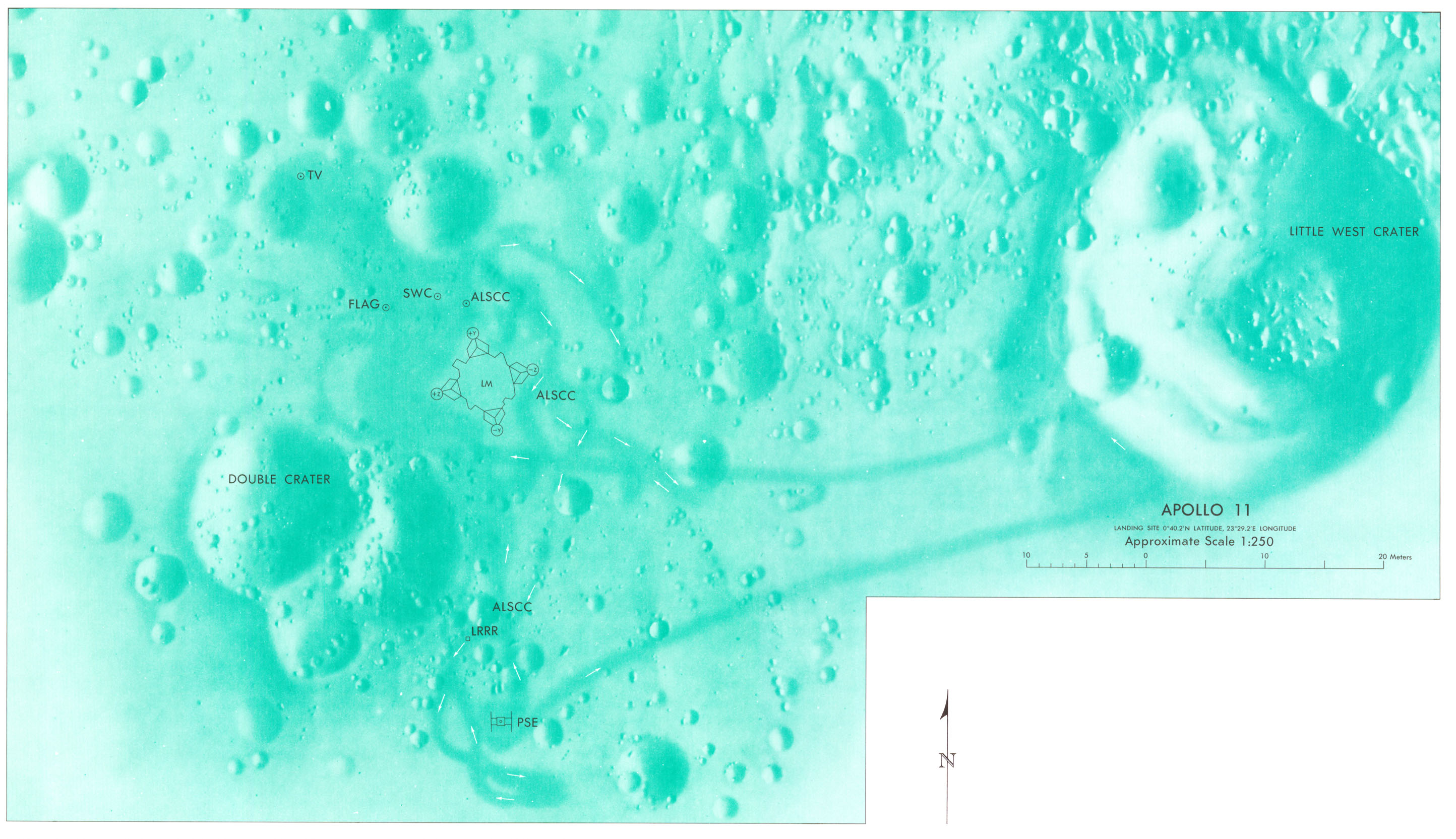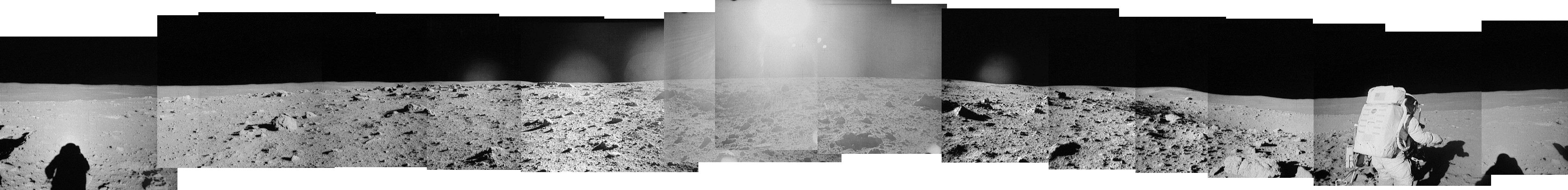 "Another point that is illustrated in this imaginary scene is that it seems remarkable that the lighting is so consistent. But think about it...all the missions landed at the same local time, so I didn't have too much trouble mixing and matching them. Where necessary, I reversed the images so that astronauts were lit from the right side; and, if they still looked out of place I added shadows, and, of course, I drew in the shadows on the ground too. It took a hell of a lot of work, so it wasn't an easy mosaic to make up. It was worth it though! What is truly amazing is that nobody's ever done it before."