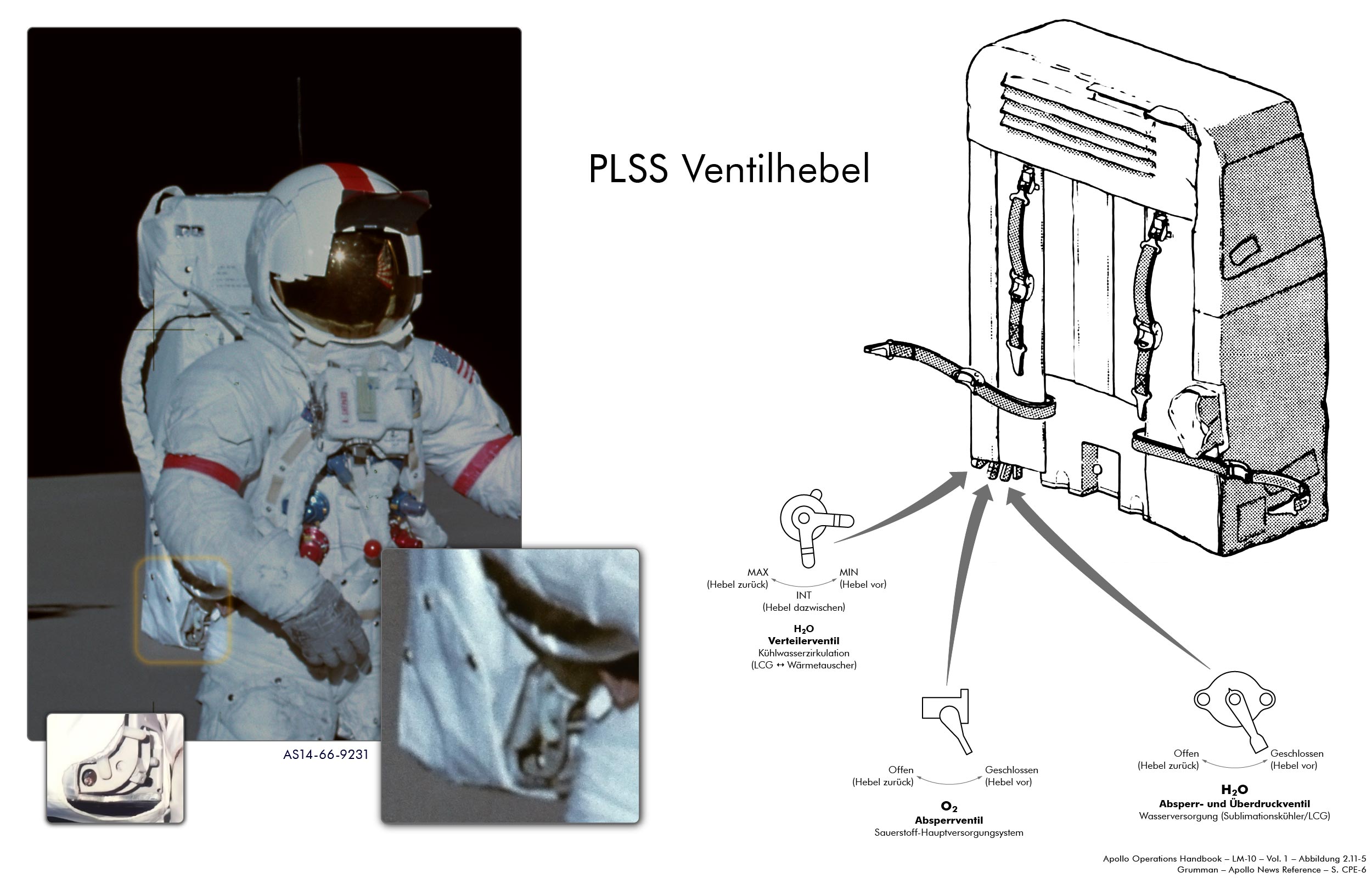 PLSSPortable Life Support System O2 – Zu. Für Druckausgleich im Anzug falls nötig OPS