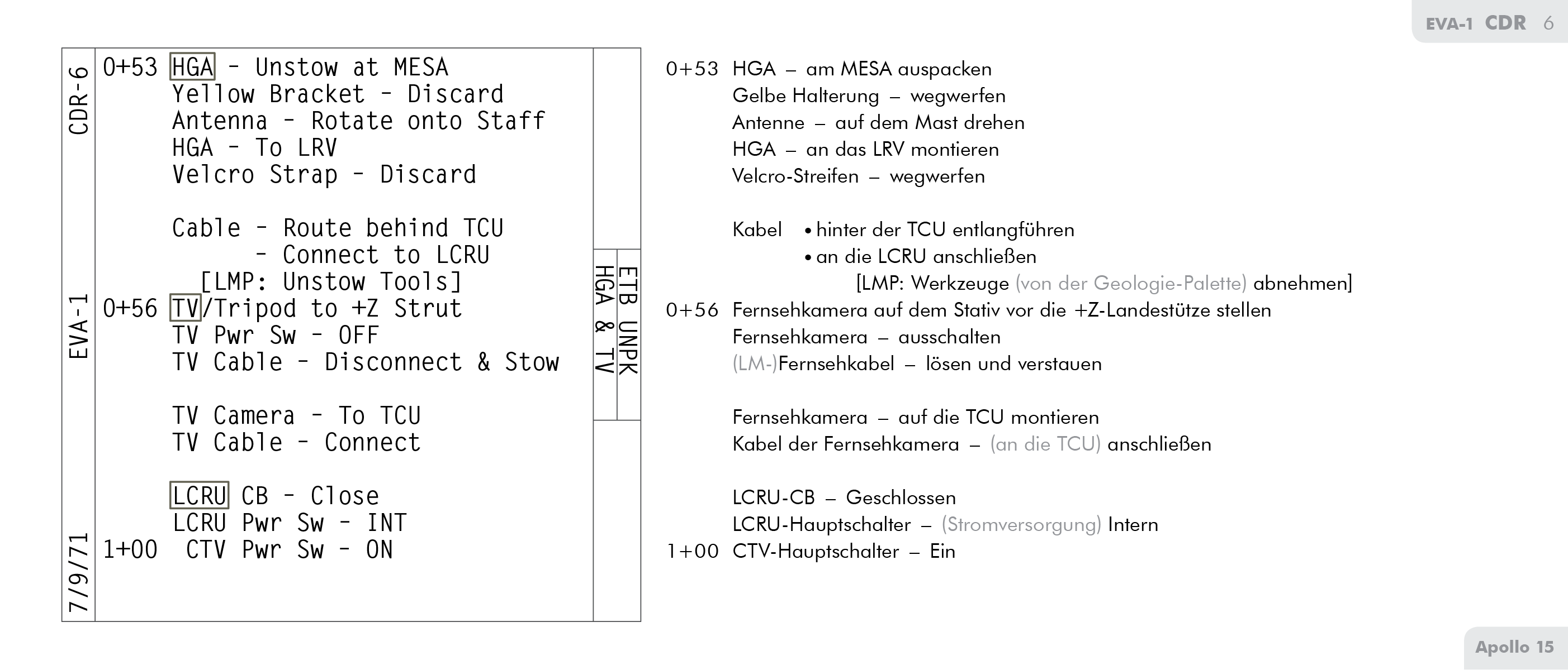 LMLunar Module hineingeht. Laut Checkliste (LMP-5) hätte er jetzt eigentlich die EVA