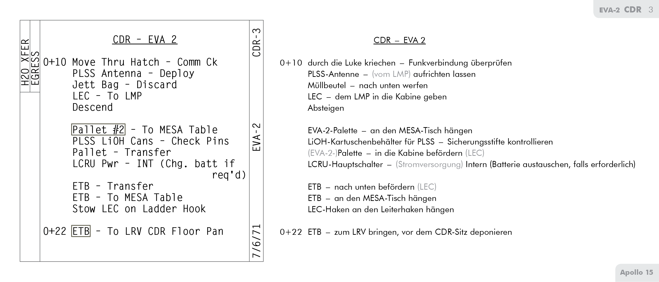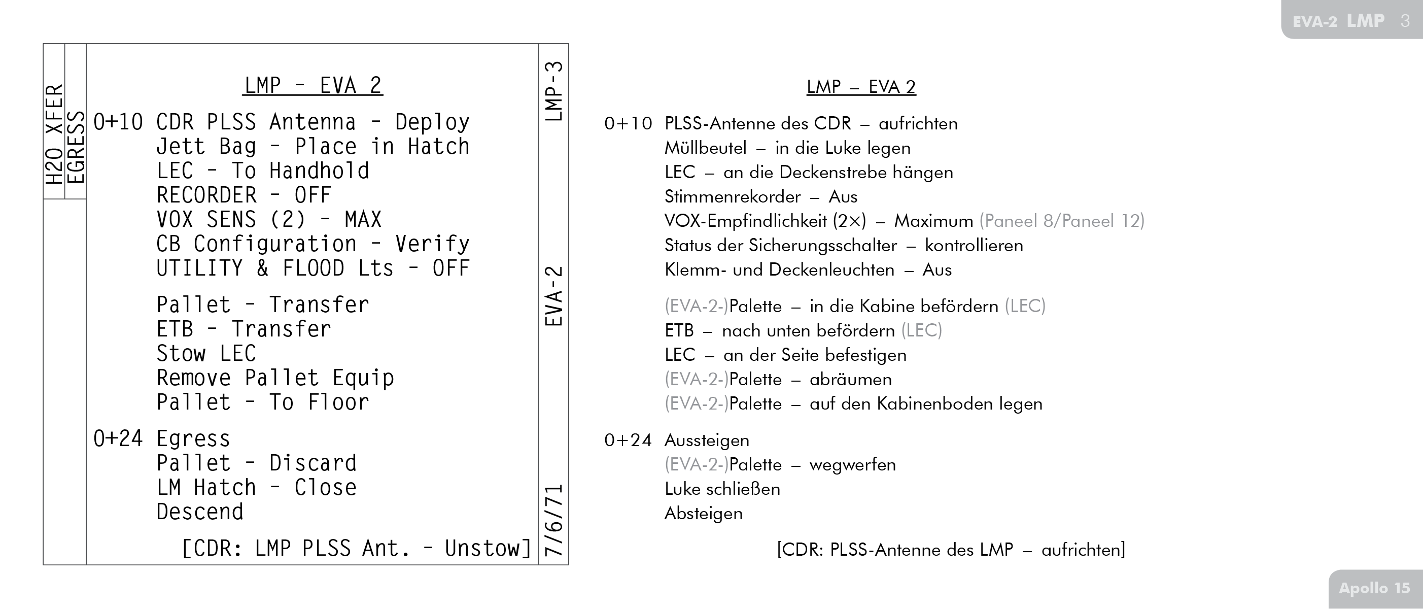 EVAExtravehicular Activity sowie Verpflegung für den Rest des Mondaufenthalts. Während der dritten EVA