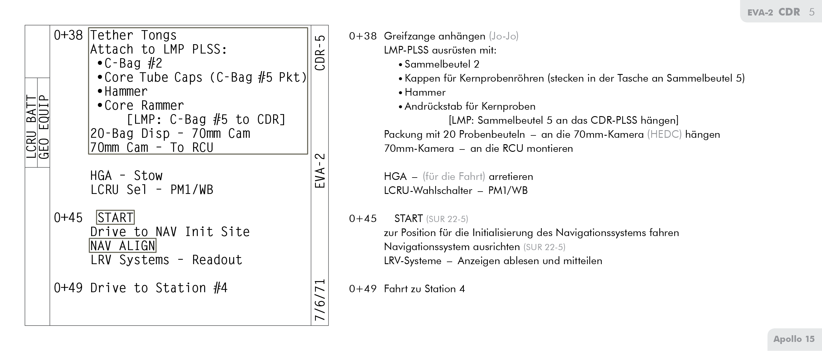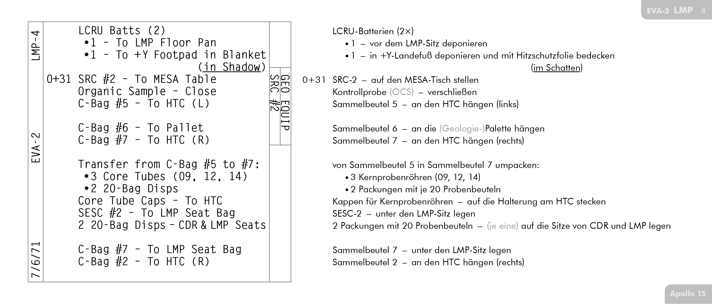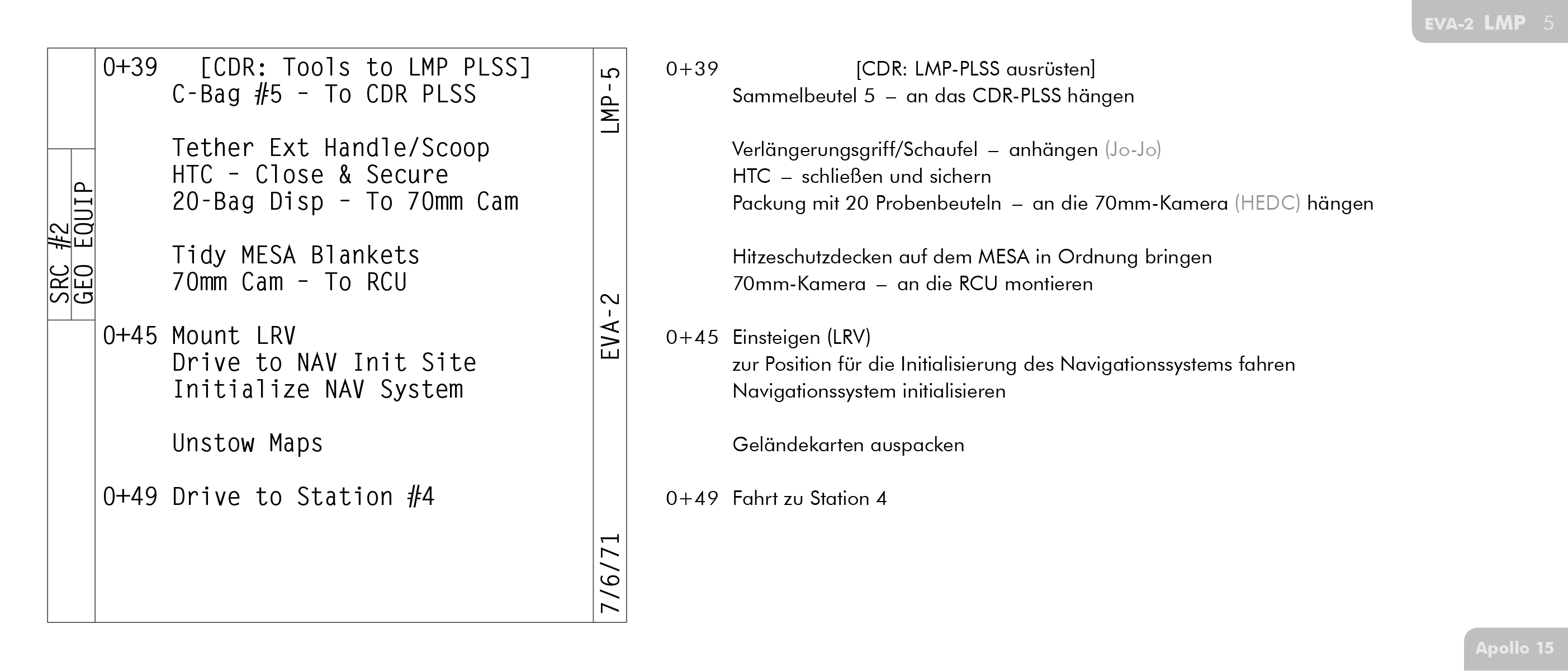 LECLunar Equipment Conveyor hier mit keinem Wort erwähnt wird, kommt sie höchstwahrscheinlich auch nicht zum Einsatz. Die Astronauten von Apollo 16 und Apollo 17 verzichten später ganz auf die Wäscheleinen-Version der LEC