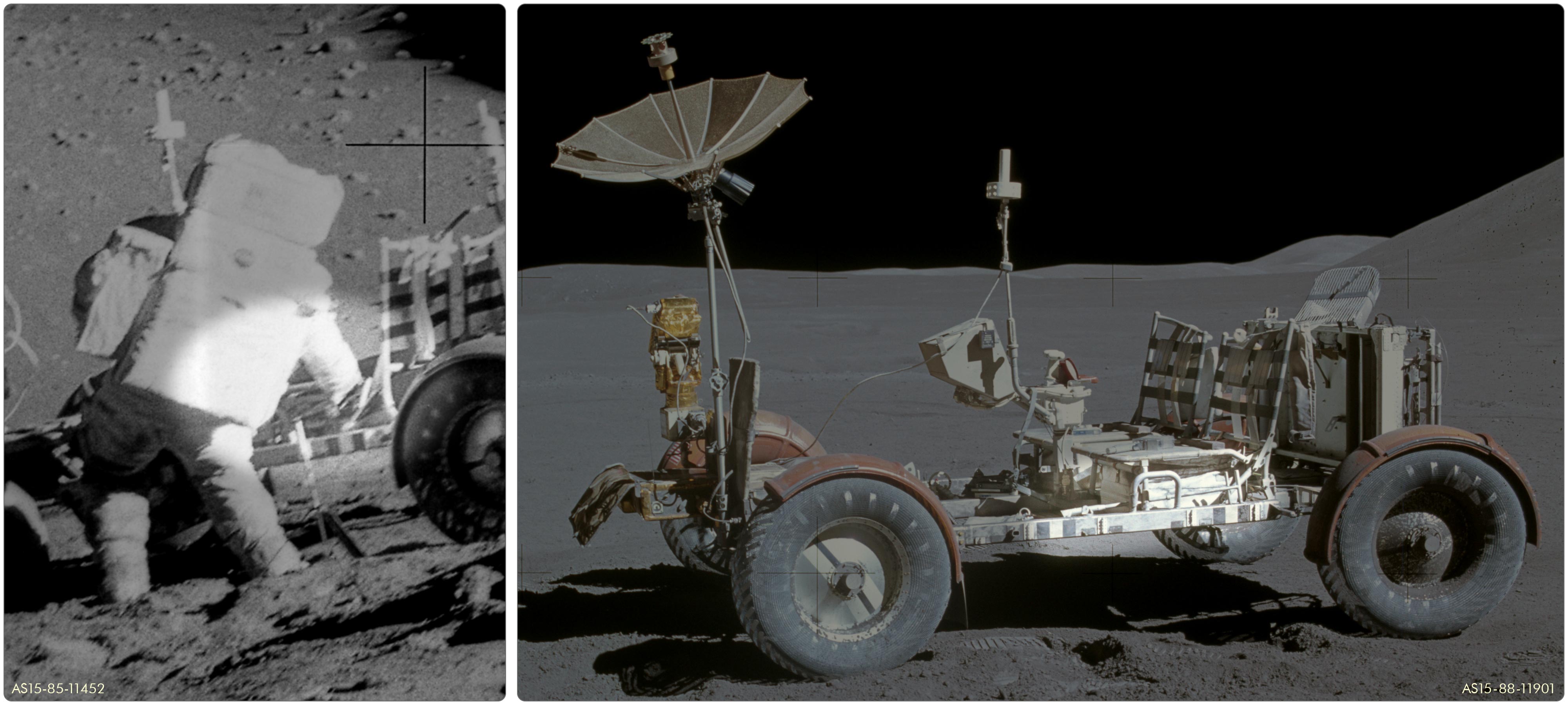 LRVLunar Roving Vehicle. Schließlich fotografierte Dave noch AS15-86-11607, ein Vorher-Bild mit der Sonne im Rücken.