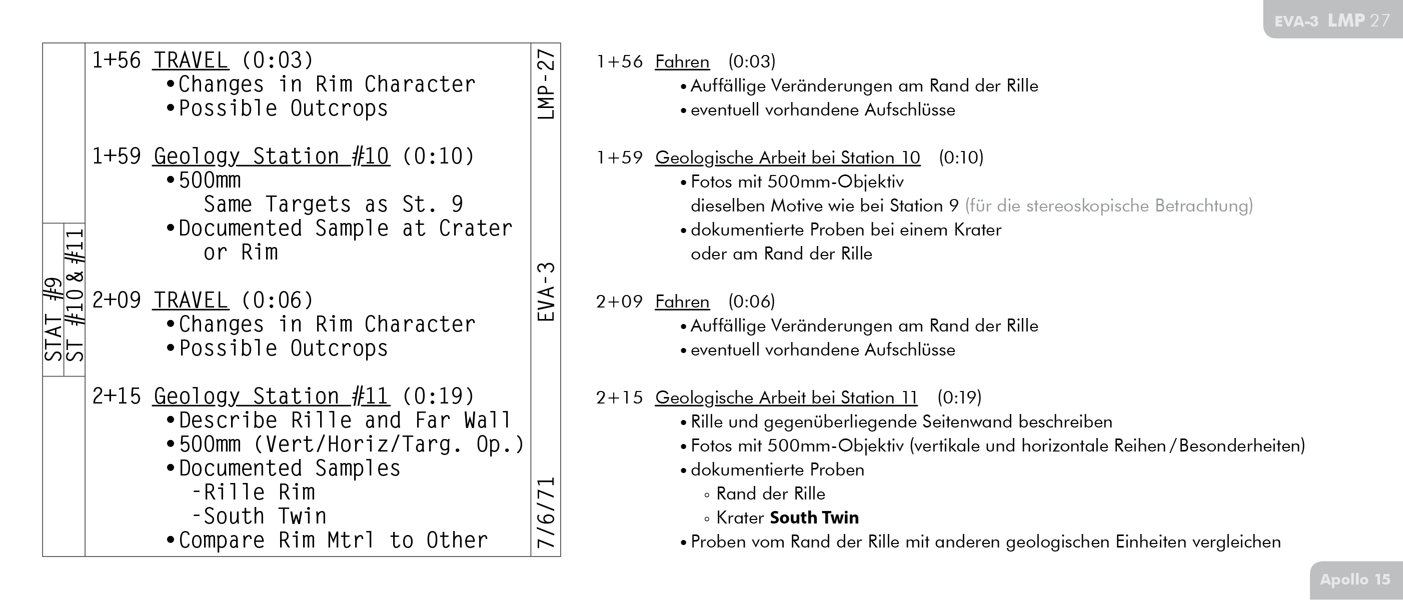 SEVAStand-Up Extravehicular Activity machte, als die Sonne um einiges tiefer stand. Einzelheiten dazu finden sich im Vorläufigen wissenschaftlichen Bericht zu Apollo 15 (Apollo 15 Preliminary Science Report) ab Seite 5-17.