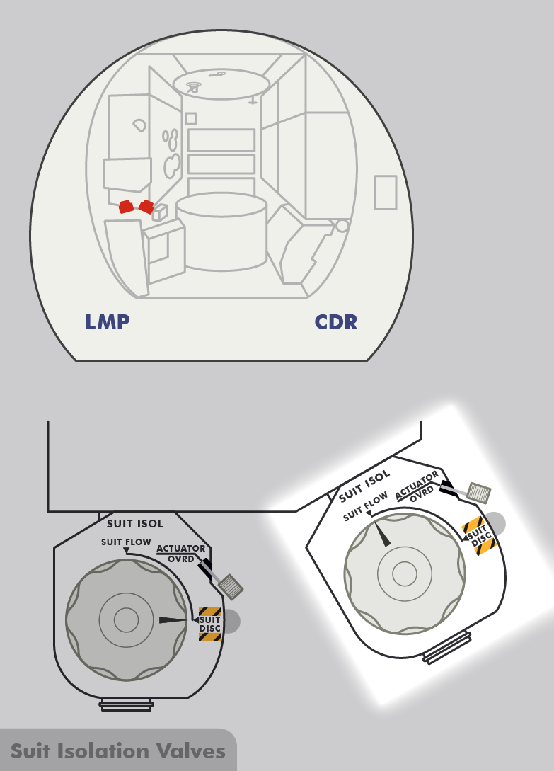 LMLunar Module) ist angeschlossen und ich stelle auf Durchfluss (ECS – Sauerstoffversorgung).