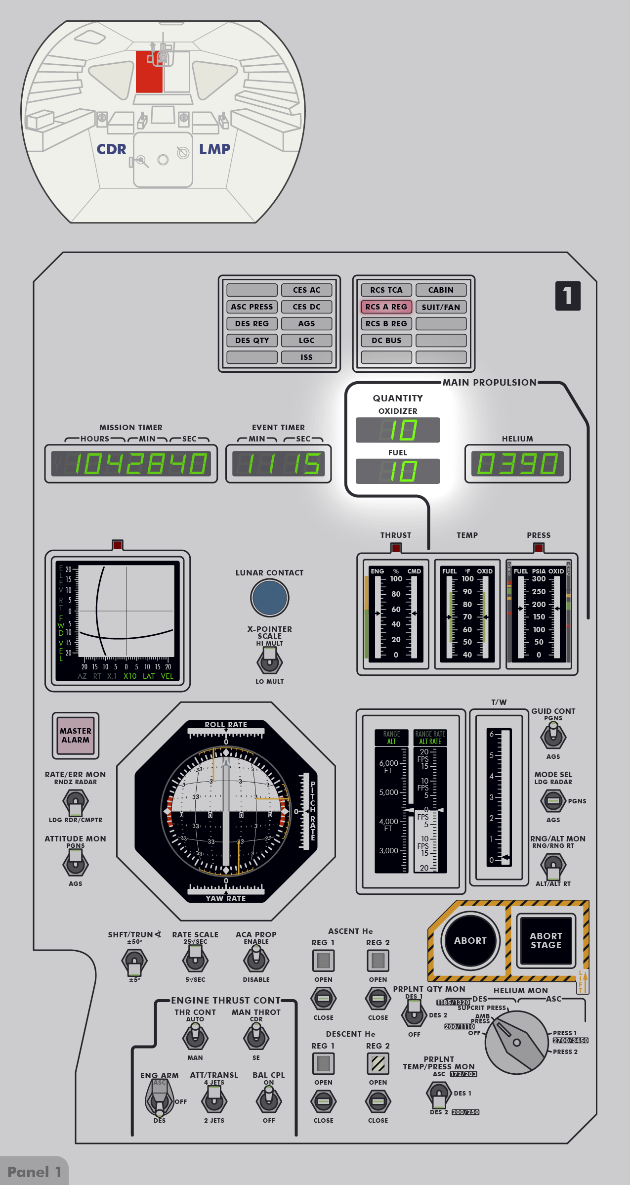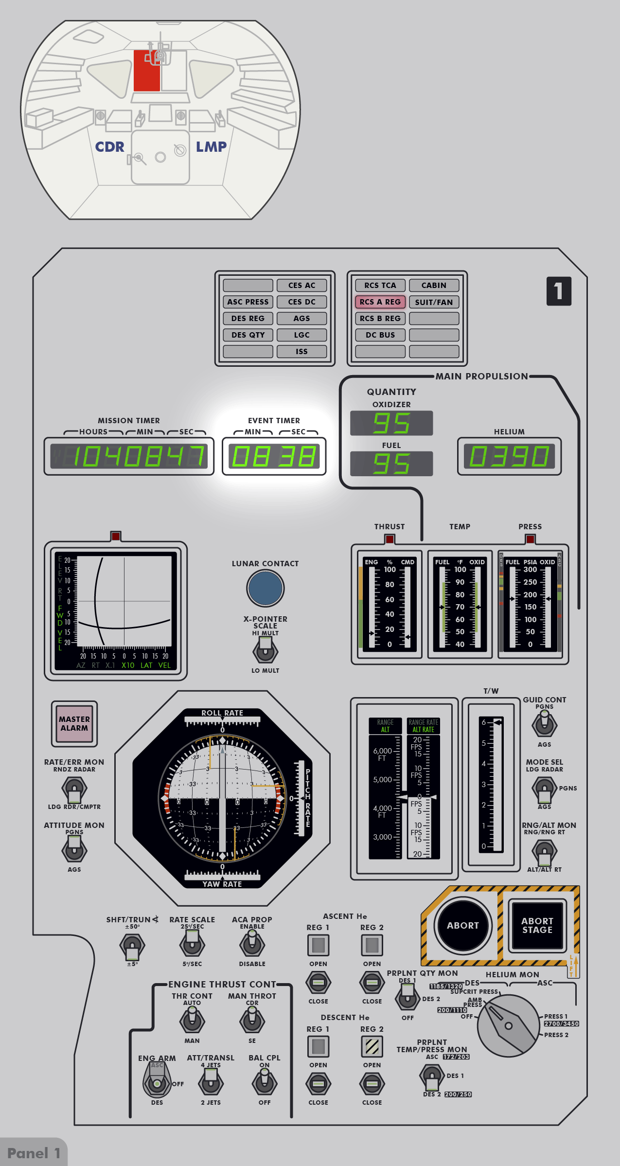 RCSReaction Control System‑System A. Dann wurde der Kurzzeitmesser (DET