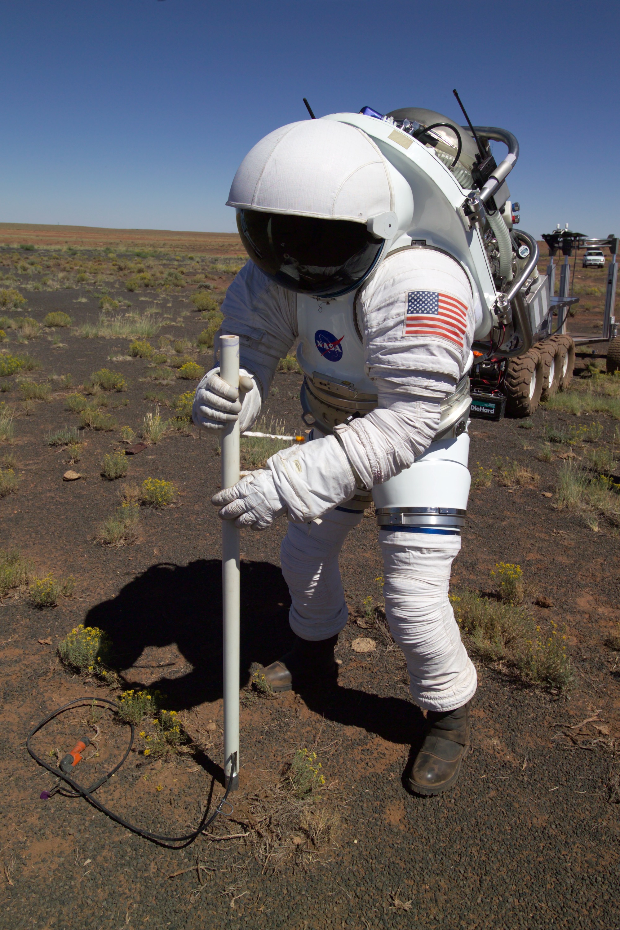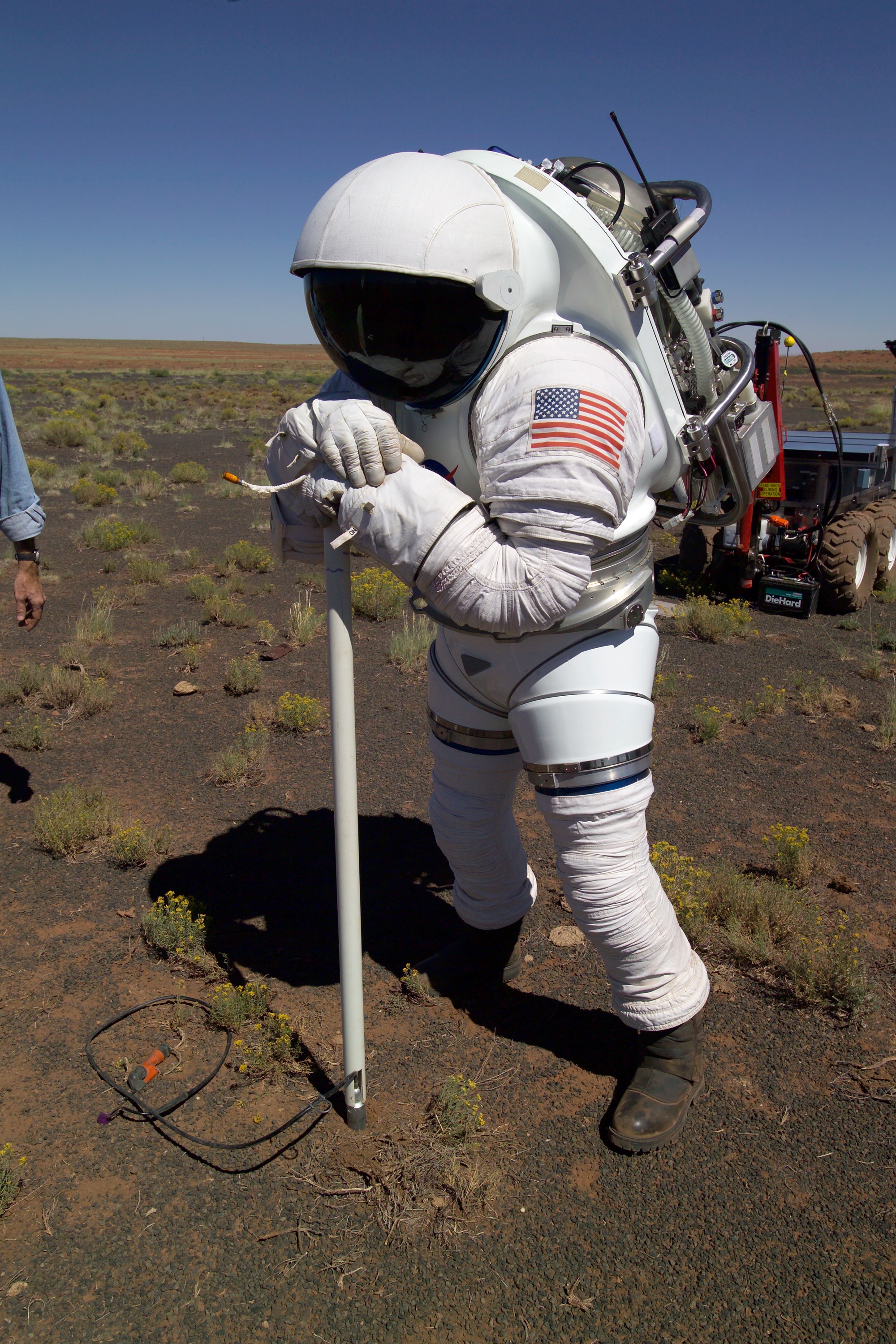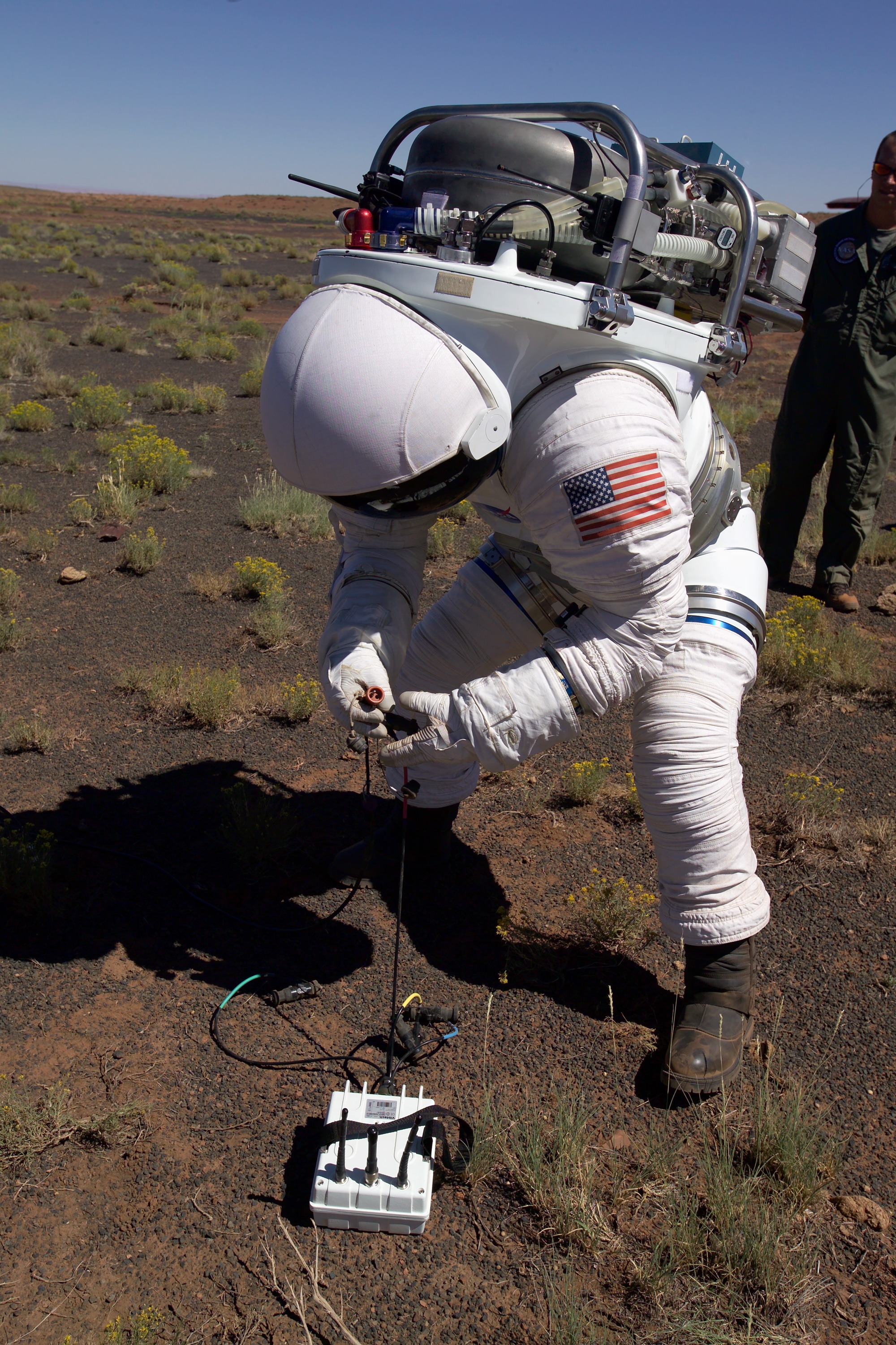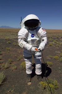 I did asuited run of approximately 30 minute involving geophones, connecting geophones to a data net, positioning a thumper with a prototype rover and firing the thumper. None of this equipment had been adapted to working in a suit, so this year's activity was a more qualitative (as opposed to quantitative) look at the general problems conducting this activity in a suit. Jim and Drew are working with a local Houston seismic services company to develop a new set of sensors that will be better adapted to planetary surface operations; we hope to be testing those in field next year.
