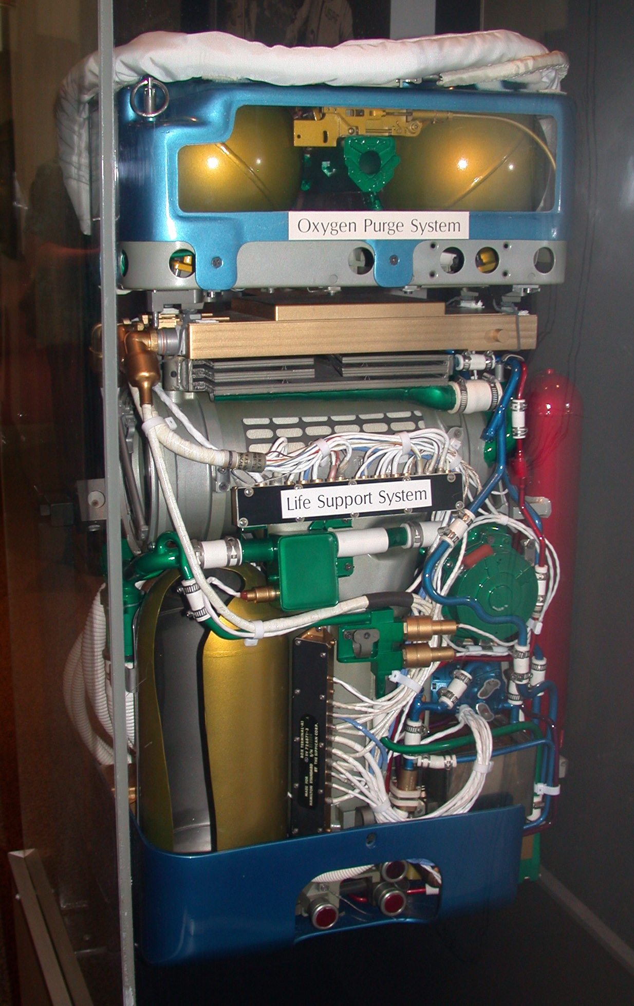 Unless otherwise noted, these photos are cutaway views of a full-scale, engineering model of the Portable Life Support System (PLSS). The colors of the internal components are used to enhance the identification of critical components only. Production models were not color coded.